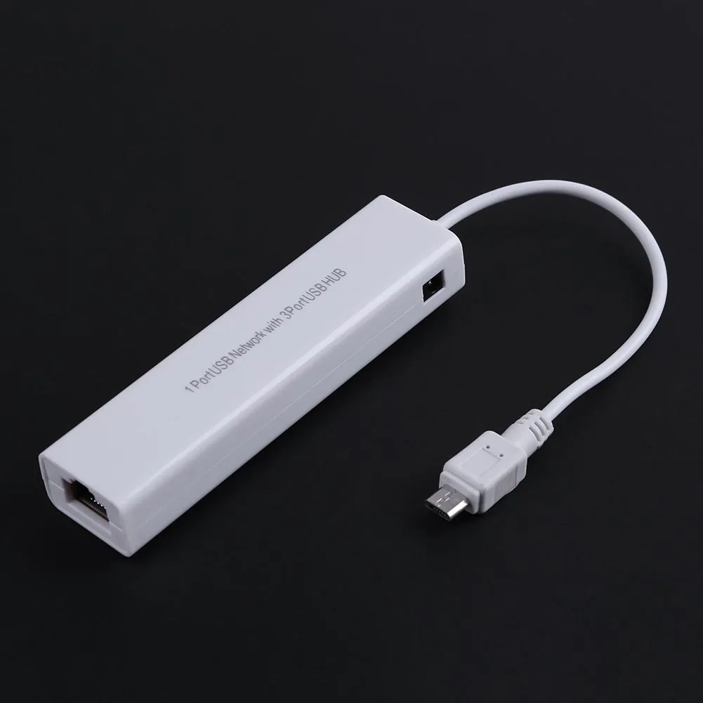 OTG 3 puertos USB 2,0 HUB 10/100MB Micro USB a RJ45 LAN adaptador tarjeta de red con cable para Android