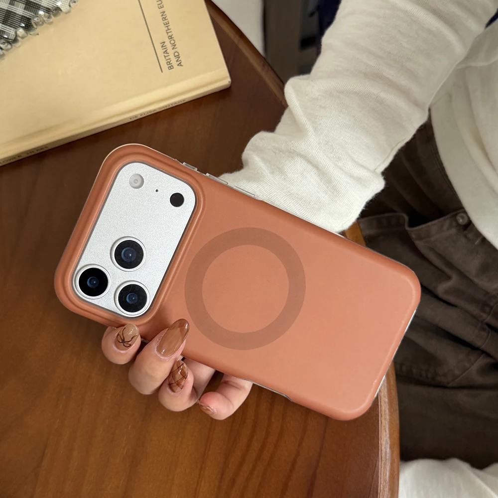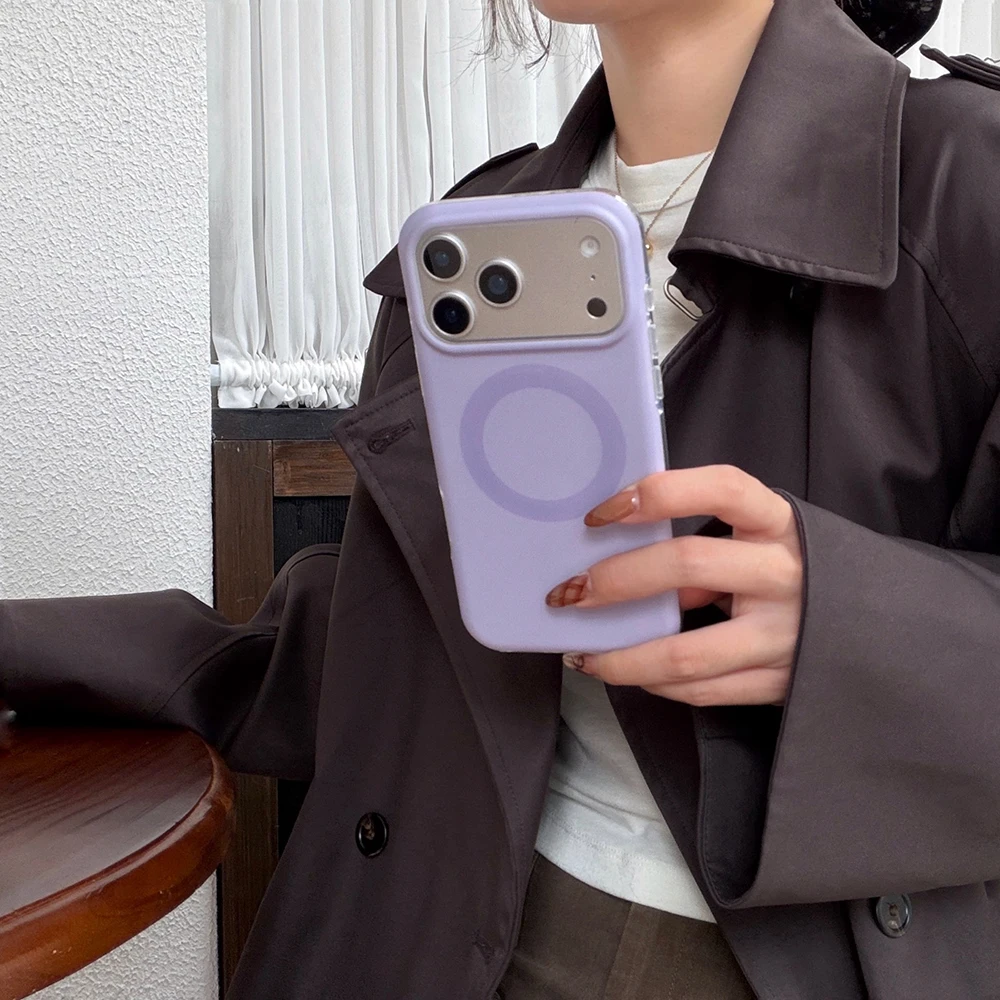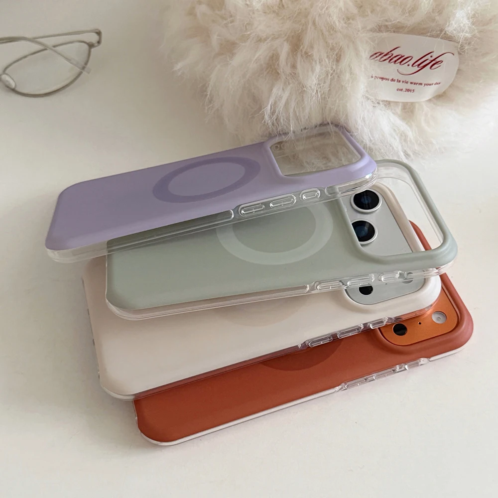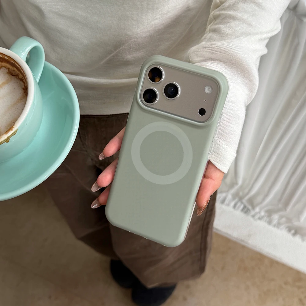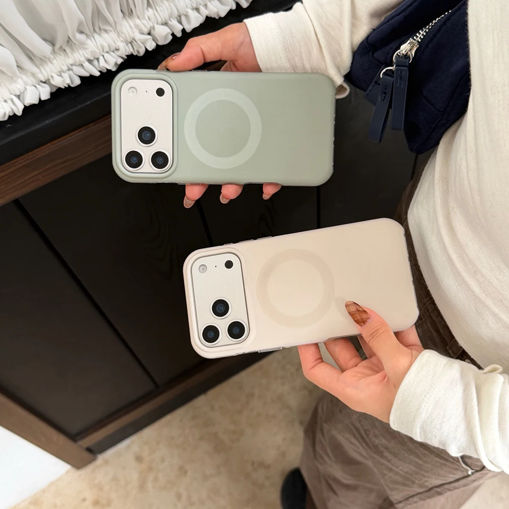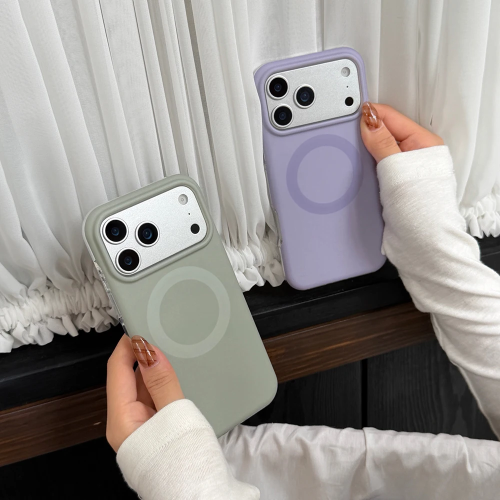 Funda magnética con carga inalámbrica de Color sólido Retro Otoño-Invierno para iPhone Air 14 15 16 17 Pro Max, funda a prueba de golpes para MagSafe