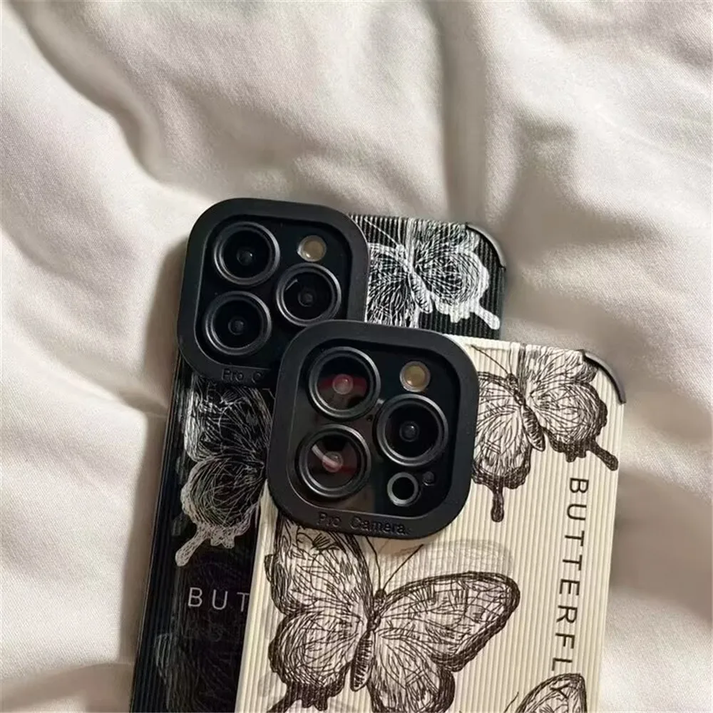 Comprar Ottwn-Bonita funda ondulada de mariposa para iPhone, 15, 14, 13, 12, 11 Pro Max, X, XR, XS Max, 8, 7 Plus, SE, 2020, suave, a prueba de golpes, transparente