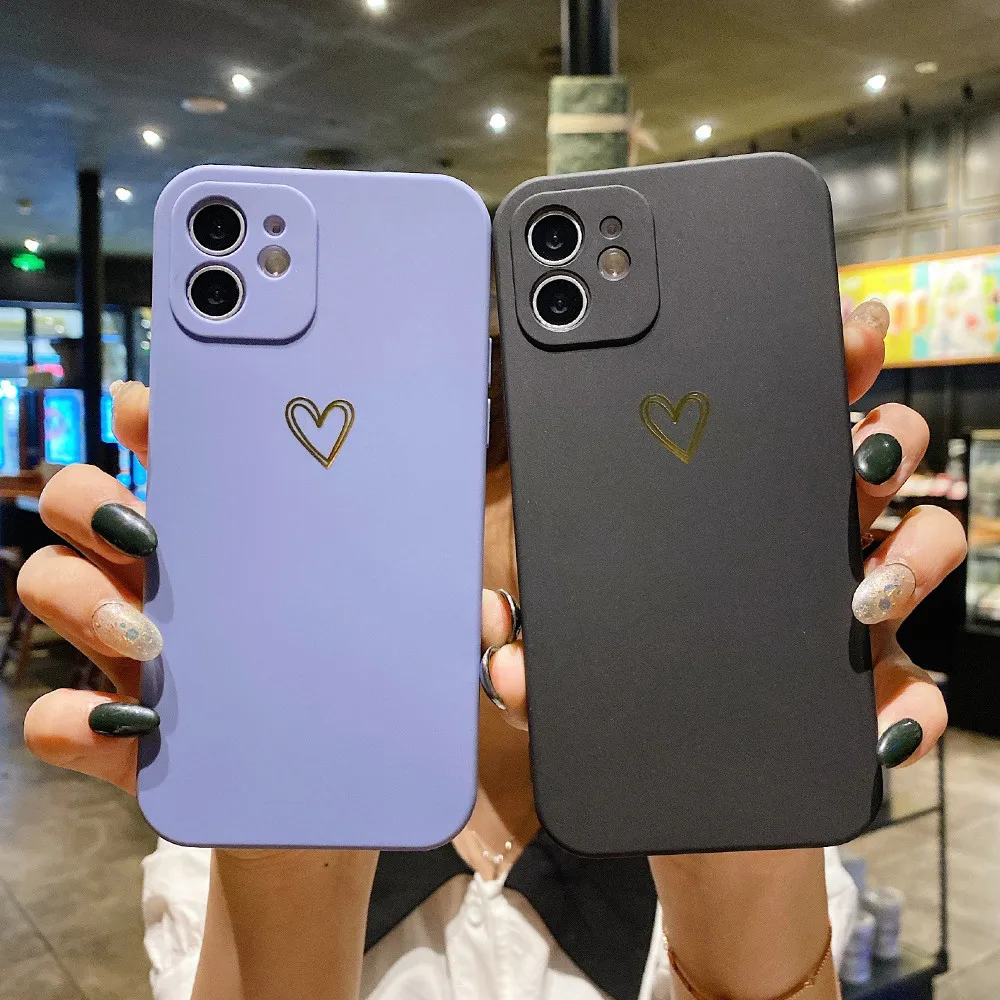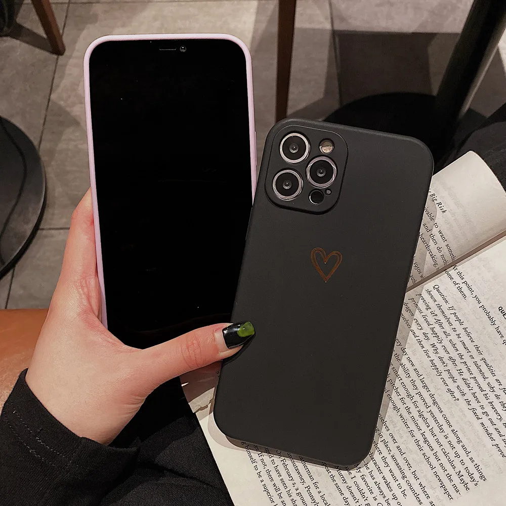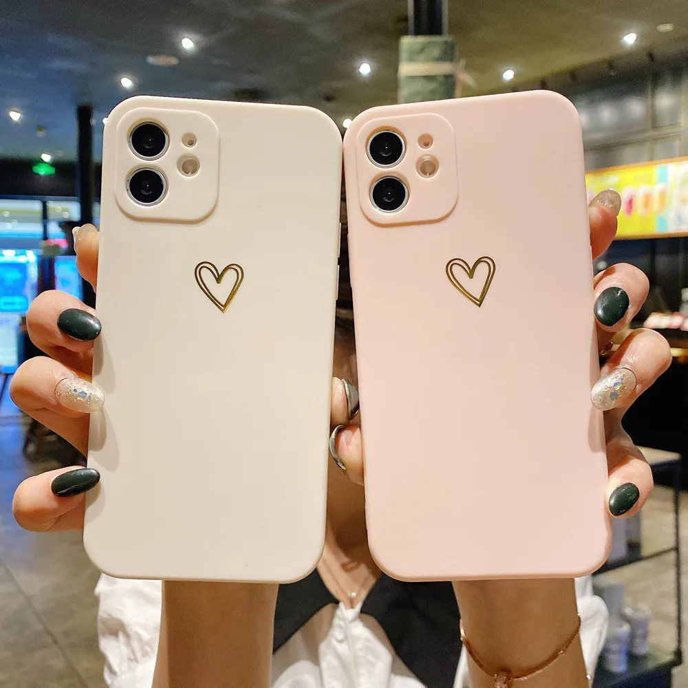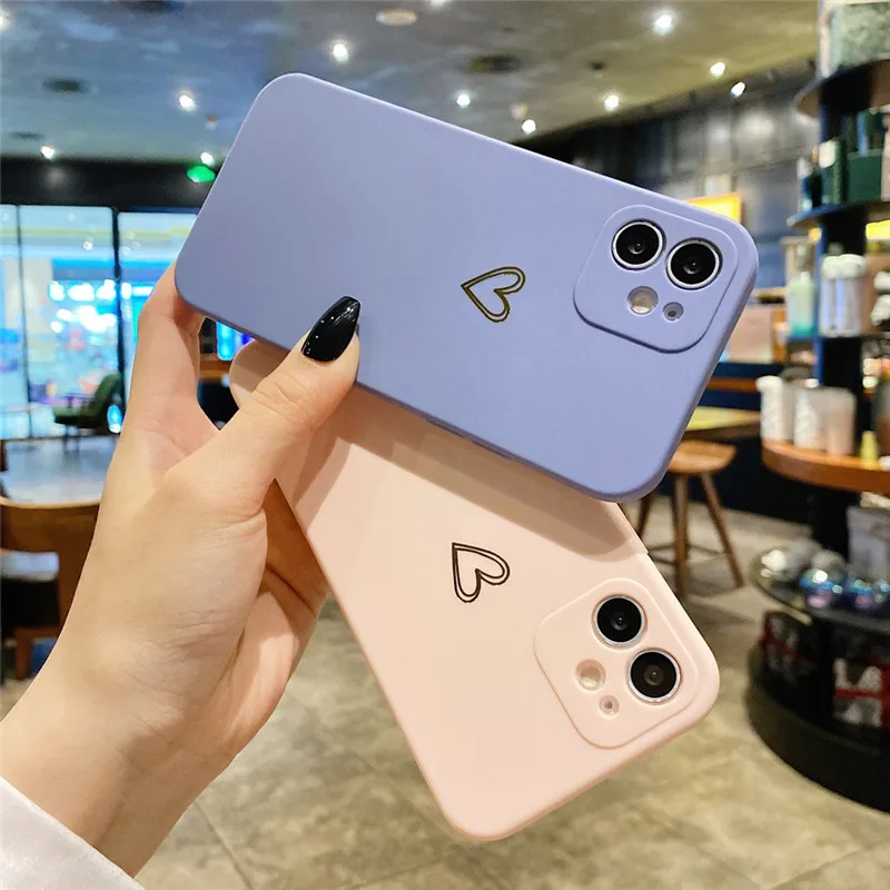 Comprar Ottwn-funda de teléfono con corazón de amor suave, carcasa trasera de silicona a prueba de golpes para iPhone 14, 11, 12, 13, 14 Pro Max, XS Max, X, XR, 7, 8 Plus, SE