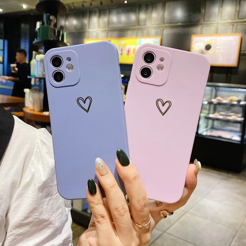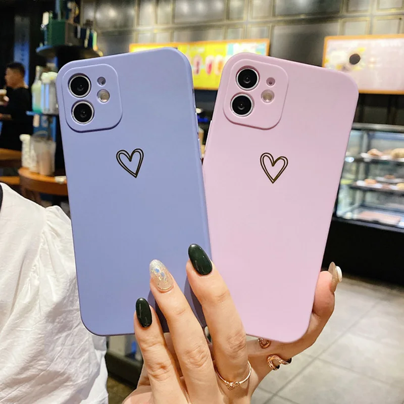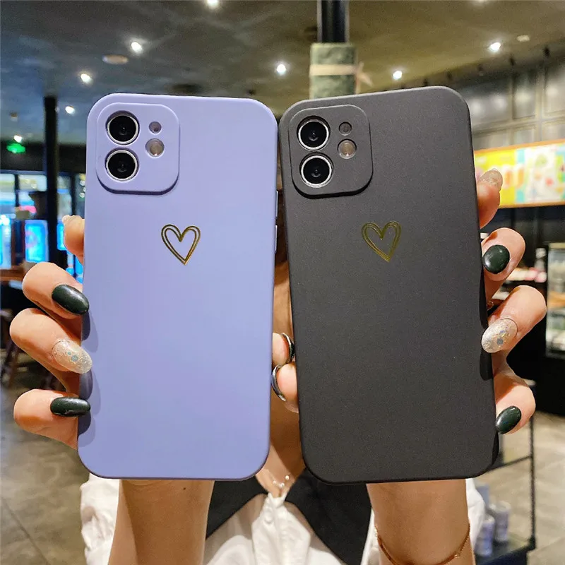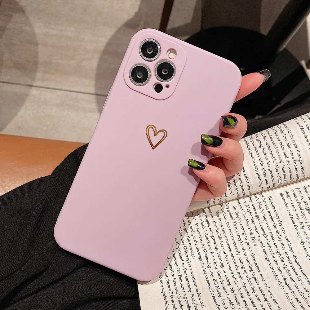 Comprar Ottwn-funda de teléfono con corazón de amor suave, carcasa trasera de silicona a prueba de golpes para iPhone 14, 11, 12, 13, 14 Pro Max, XS Max, X, XR, 7, 8 Plus, SE