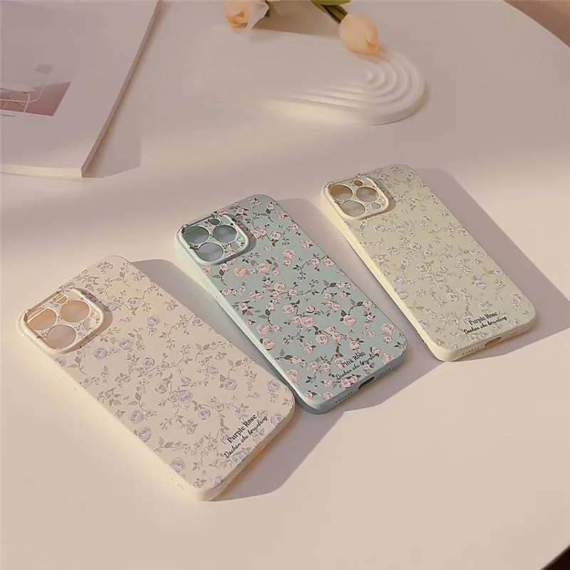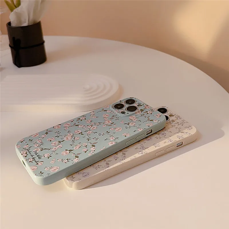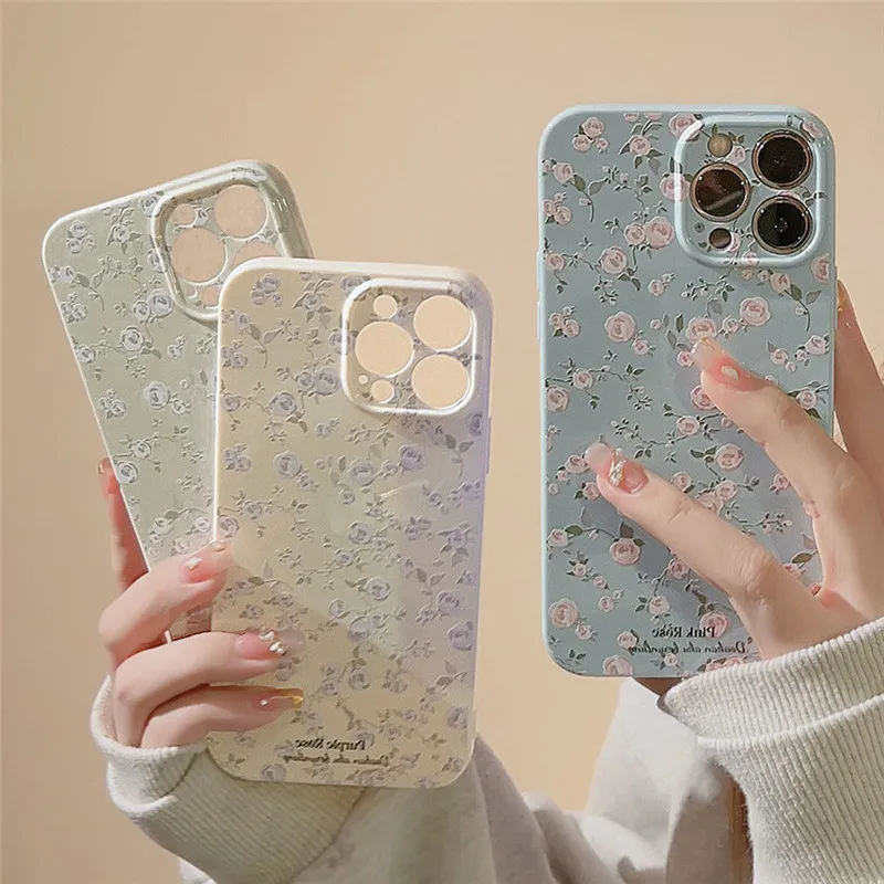 Comprar Ottwn-funda de teléfono con flores Retro coreanas para iPhone, carcasa trasera de silicona suave a prueba de golpes para iPhone 14, 13, 12, 11 Pro Max, 14