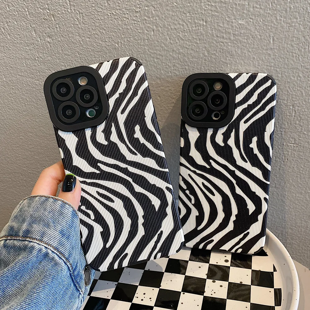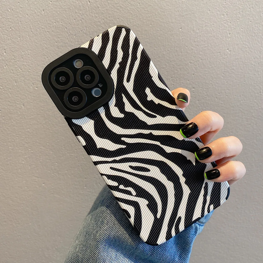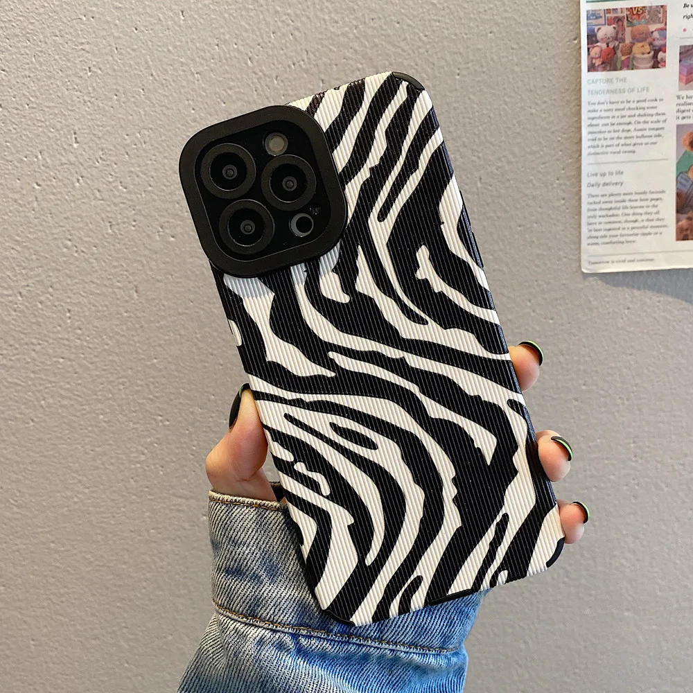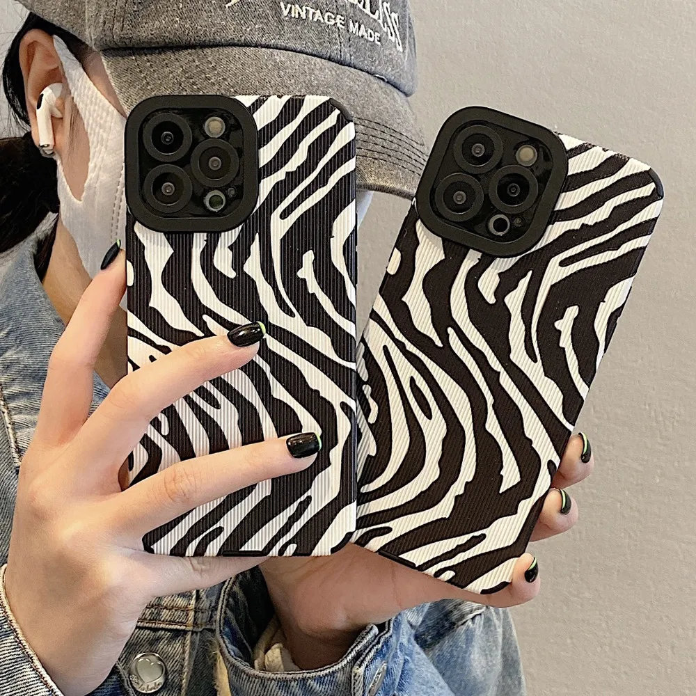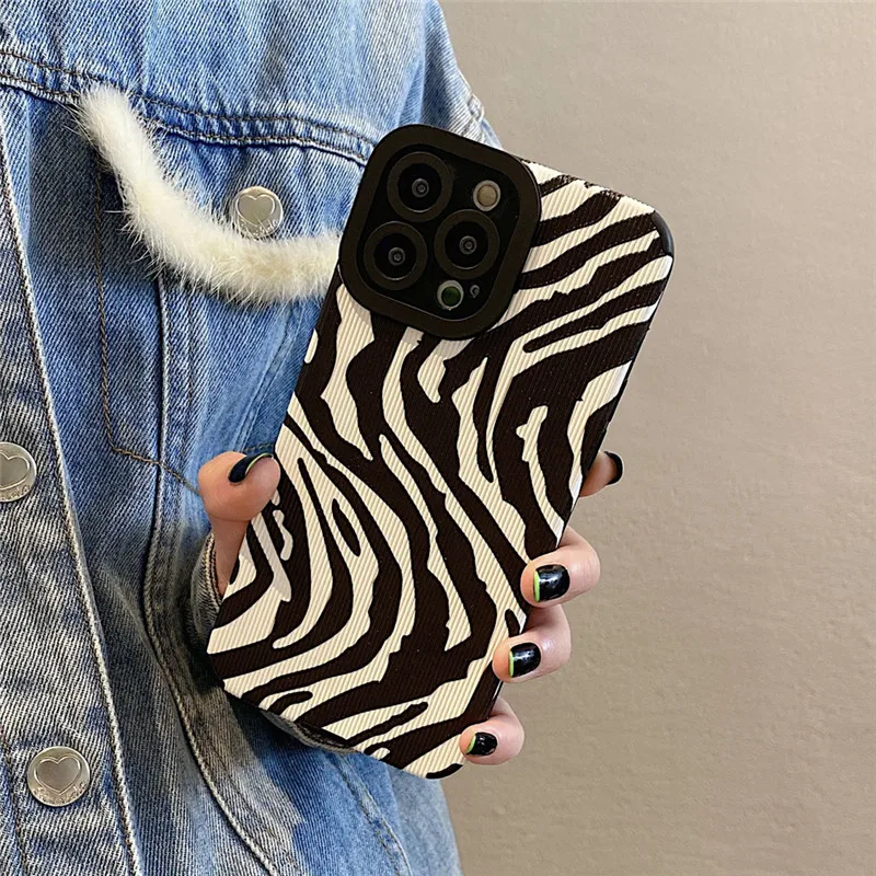 Comprar Ottwn-funda de teléfono con patrón de cebra para iPhone, carcasa trasera de silicona a prueba de golpes para modelos 11, 14, 13 Pro Max, 12, 7, 8Plus, X, XR, XS Max