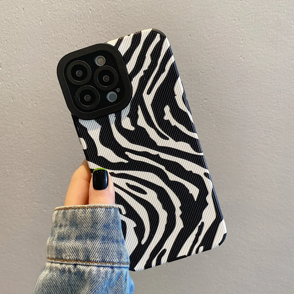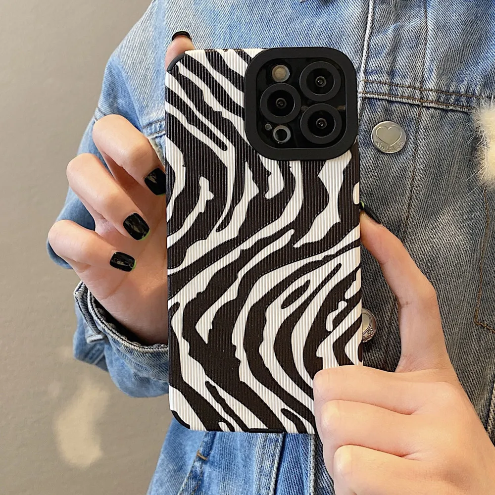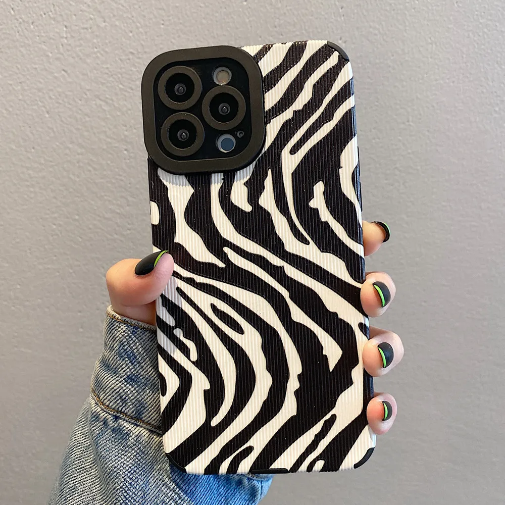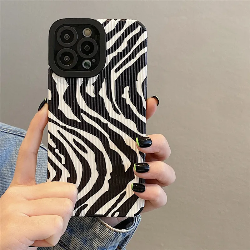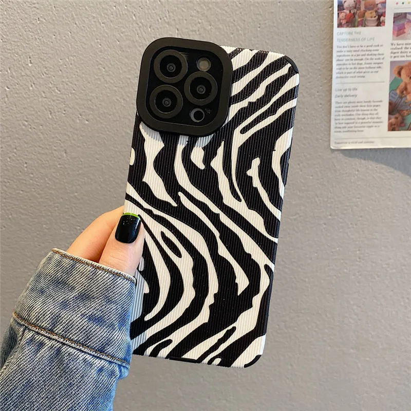 Comprar Ottwn-funda de teléfono con patrón de cebra para iPhone, carcasa trasera de silicona a prueba de golpes para modelos 11, 14, 13 Pro Max, 12, 7, 8Plus, X, XR, XS Max