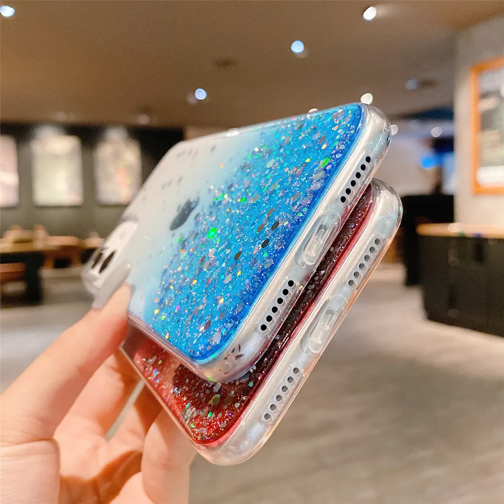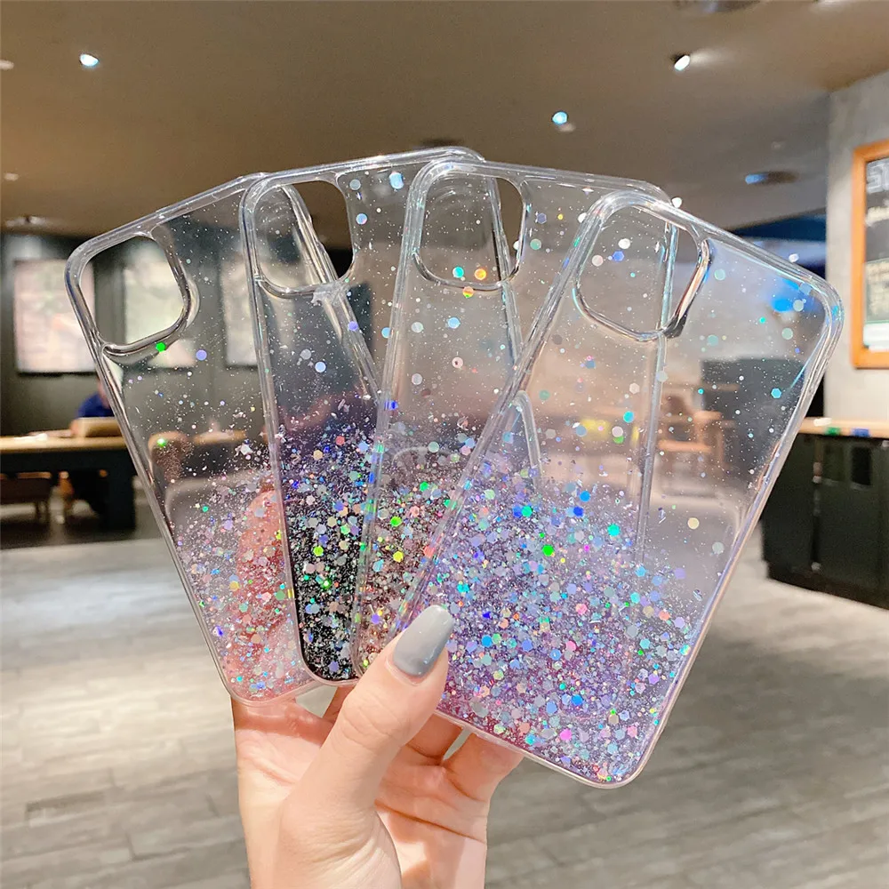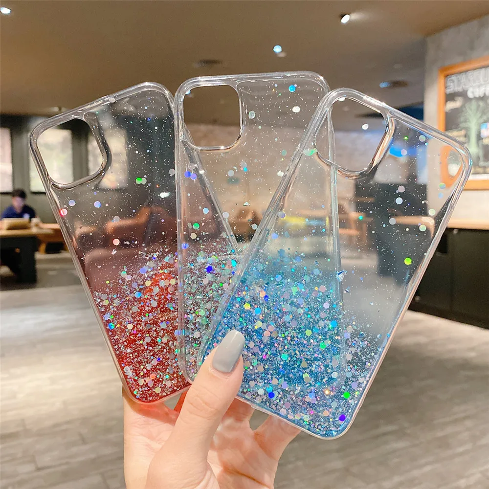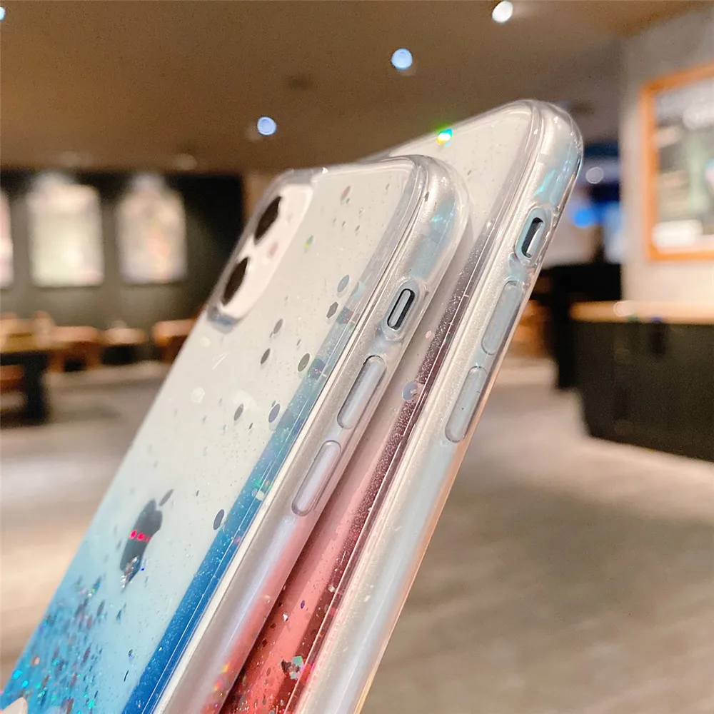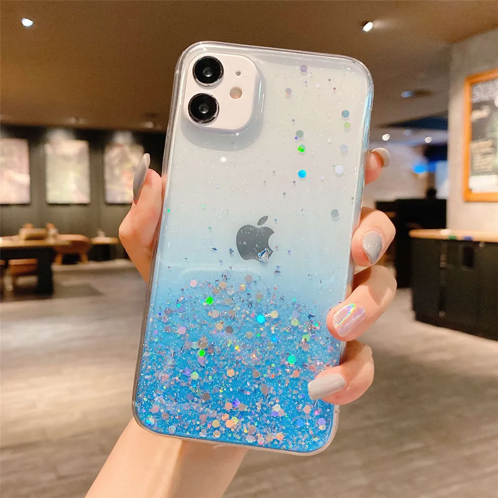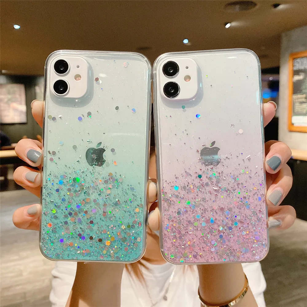 Comprar Ottwn-funda de teléfono transparente con purpurina para iPhone, carcasa trasera suave de lujo para modelos 14, 11, 12, 13 Pro Max, XS, X, XR, 7, 8 Plus, SE 2020