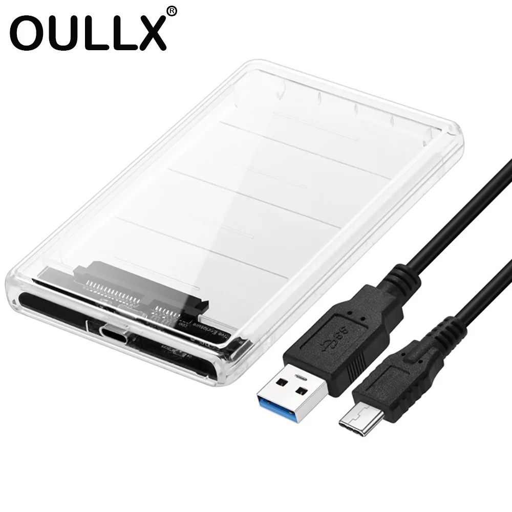 Comprar OULLX-carcasa transparente tipo C para disco duro externo, carcasa para HDD de 2,5 pulgadas, USB 3,0, adaptador SATA para SSD