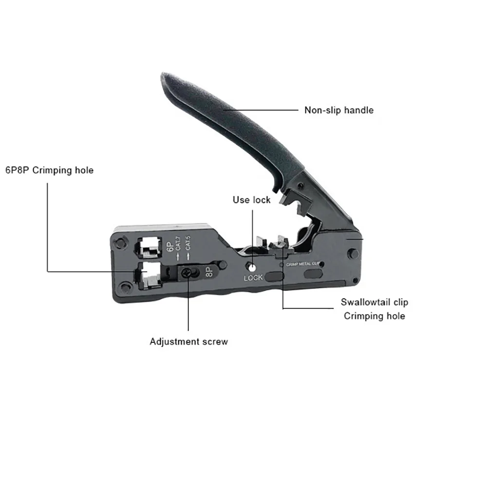OULLX Cat7 RJ45 Connector Network Cable Pliers Dovetail Clamp Crimping Tools Cat5 Cat5e Cat6 Cat6A Multifuncti Crystal Head Tool