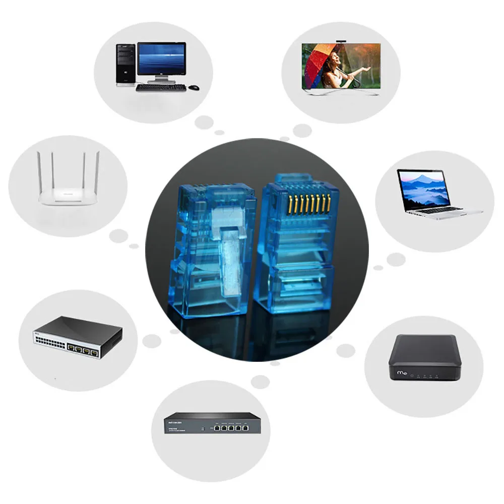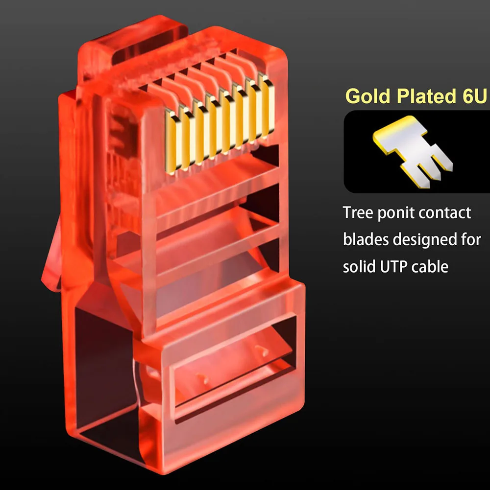 100% nuevo y de alta calidad.Conectores RJ45 enchufe Modular.Enchufes de Cable de red de 8 pines.Cables chapados en oro 6U para una mejor transmisión de datos y una mayor fuerza de señal.