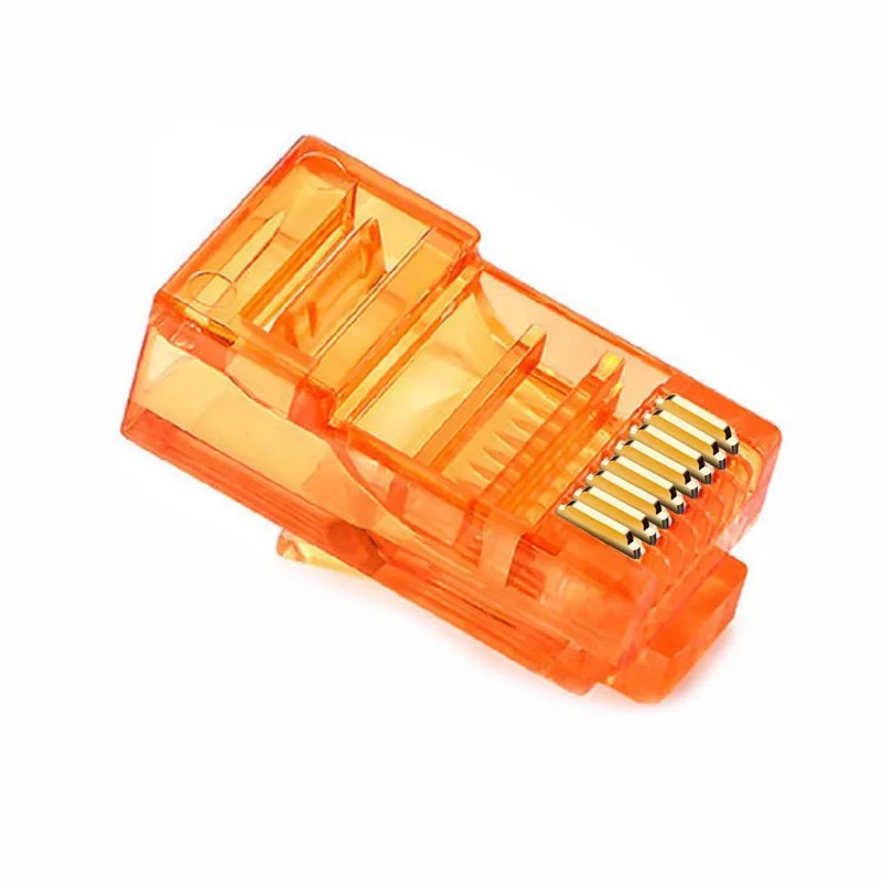 OULLX 6U RJ45 Ethernet chapado en oro Cat5e Jack UTP Módulo de enchufe conector de red RJ-45 cabezas de cristal Cat5 Cable Multicolor