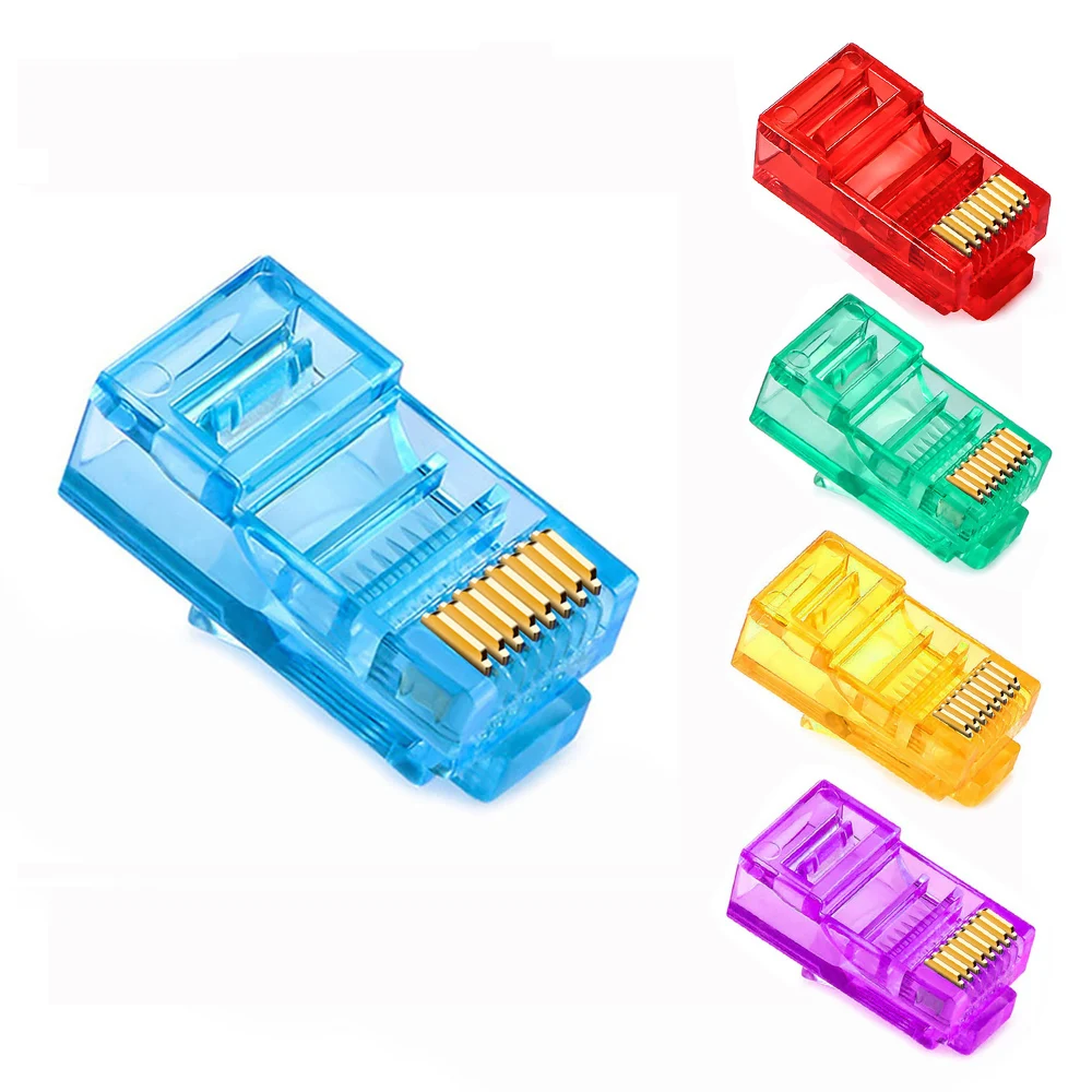 Comprar OULLX-enchufe Ethernet 6U RJ45, conector de red, Conector de módulo UTP, conector Cat5e chapado en oro, cabezales de cristal, Cable Multicolor Cat5, RJ-45