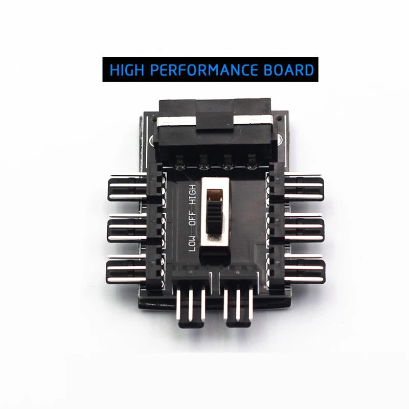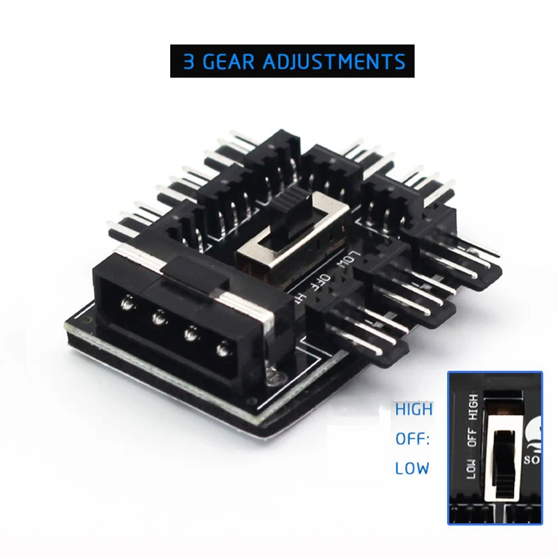 Apto para ventilador de refrigeración de 12V y 3 pines, corriente eléctrica total de 8 vías ≤ 2A.