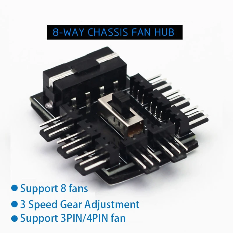 Apto para ventilador de refrigeración de 12V 3 pines/4 pines, corriente eléctrica total de 8 vías ≤ 2a