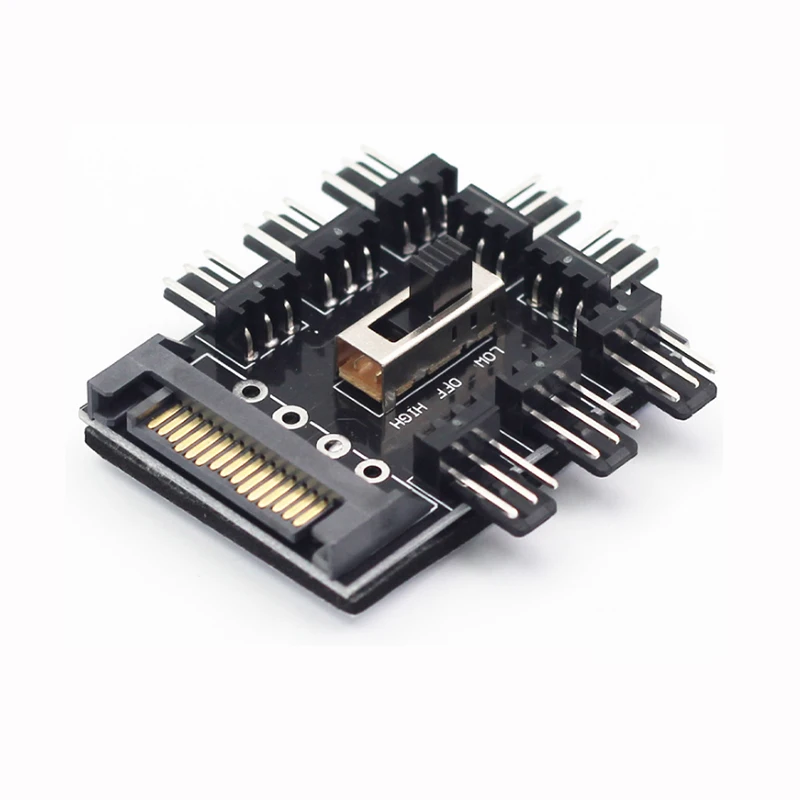 OULLX 1 a 8 3Pin Fan Hub Pwm Sata Molex Splitter PC Cable de minería 12V Power supply Cooler Speed Controller 4PIN SATA adaptador