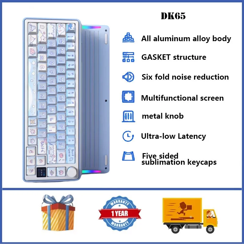 Comprar OUSAID-Junta de teclado mecánico inalámbrico DK65, estructura intercambiable en caliente, Teclado mecánico de aluminio personalizado RGB