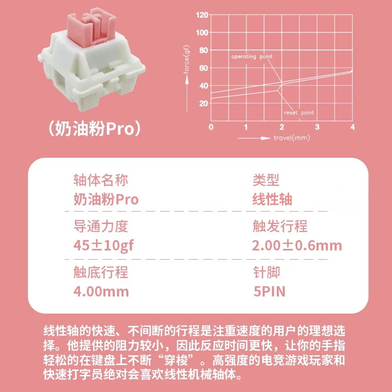 Outemu crema amarillo/rosa/azul/verde Pro Switch interruptor de teclado mecánico 5 pines Advance gran eje de párrafo/POM de eje lineal