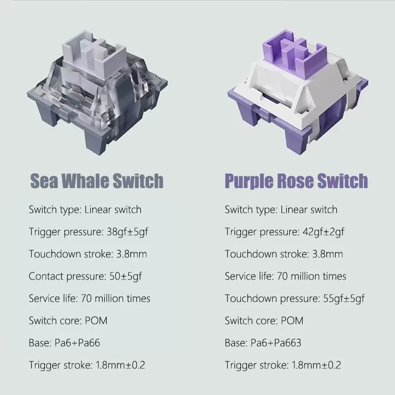Comprar OUTEMU-interruptor lineal de ballena de mar, rosa púrpura, 5 pines, 50g, 55g, teclado mecánico, lubricación fina de fábrica para AULA F75 AJAZZ AK820