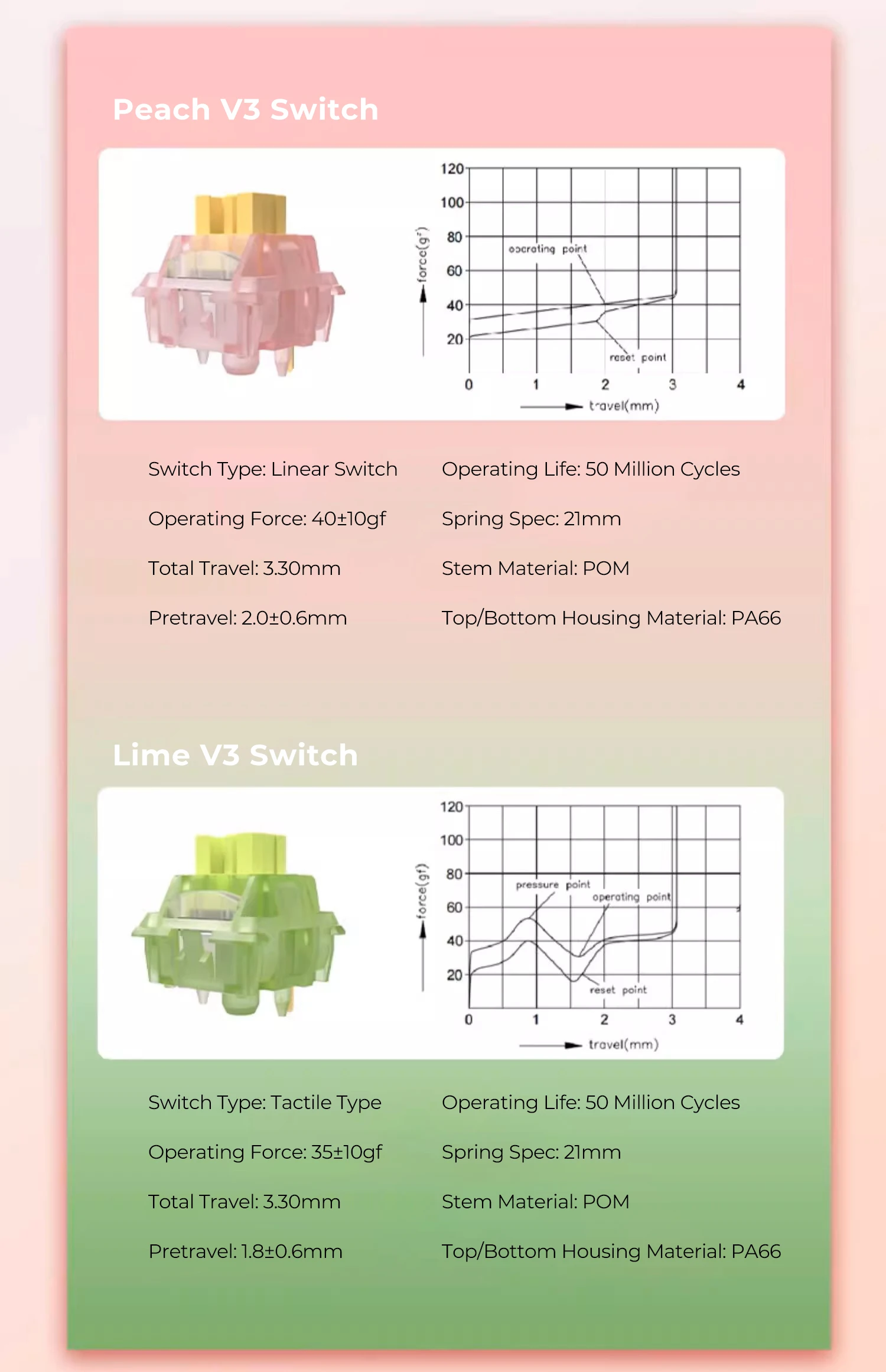 Comprar Outemu-interruptor silencioso V3 para teclado mecánico, pulsador de limón, Lima táctil lineal, POM PA66, de fábrica