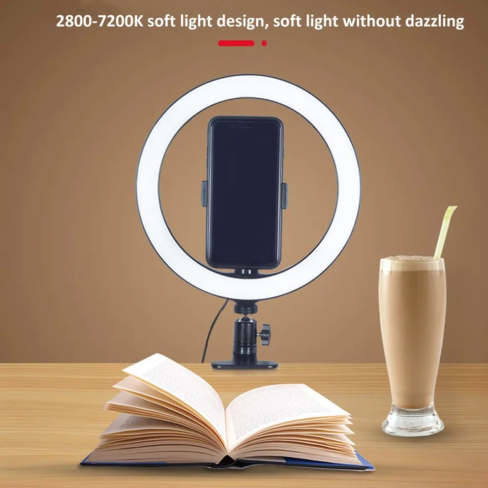 Comprar OUTMIX-Anillo de luz LED regulable para selfi, iluminación de fotografía portátil, 26cm, para Youtube, transmisión en vivo, estudio, vídeo, con Cable USB