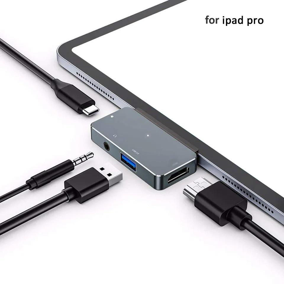 Comprar OUTMIX-Hub USB tipo C a HDMI 4K, adaptador compatible con USB-C, PD, USB3.0, puerto Jack de 3,5mm, puerto USB tipo C, para iPad Pro, Macbook Pro/Air