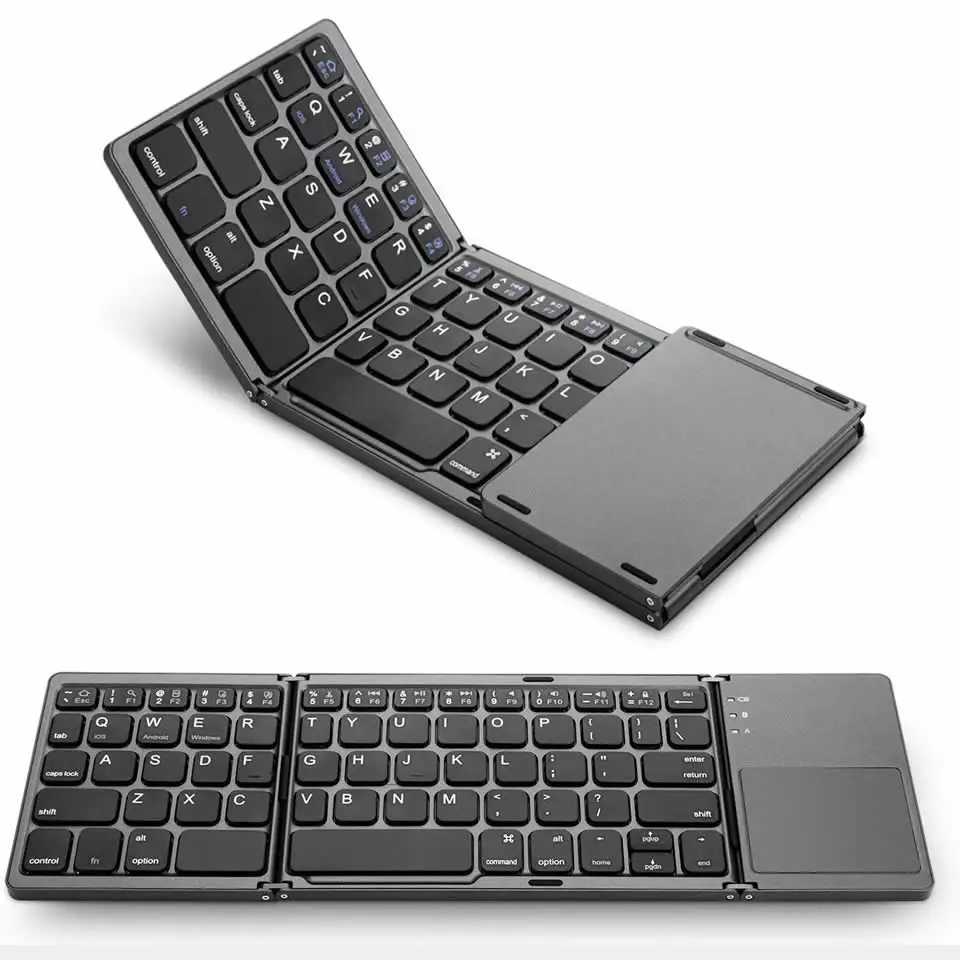 Comprar OUTMIX-miniteclado Portátil con Bluetooth, teclado inalámbrico plegable con panel táctil para IOS, Android, Windows, ipad y tableta, nuevo