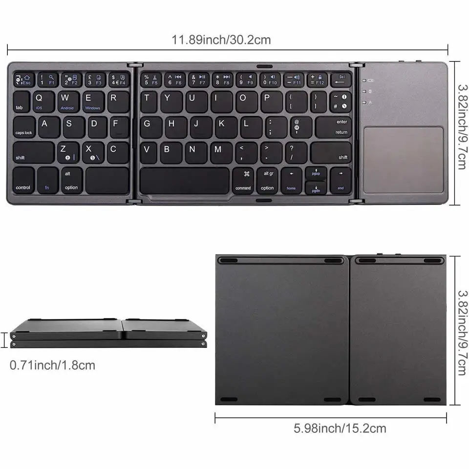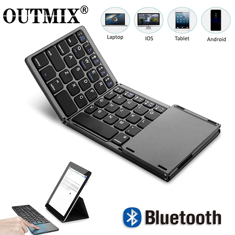 Comprar OUTMIX-miniteclado Portátil con Bluetooth, teclado inalámbrico plegable con panel táctil para IOS, Android, Windows, ipad y tableta, nuevo