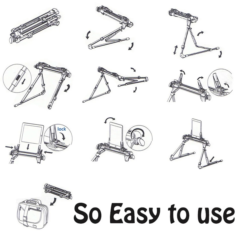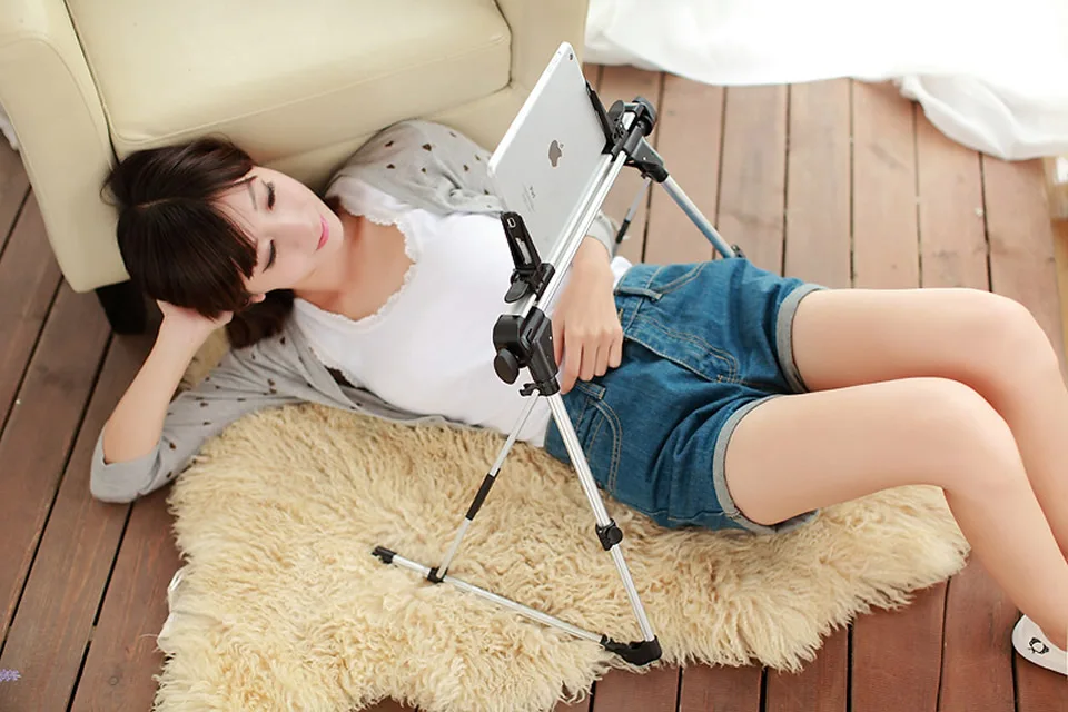 OUTMIX Soporte para tableta Soporte para teléfono Ajustable Lazy Bed Floor Escritorio Trípode Plegable