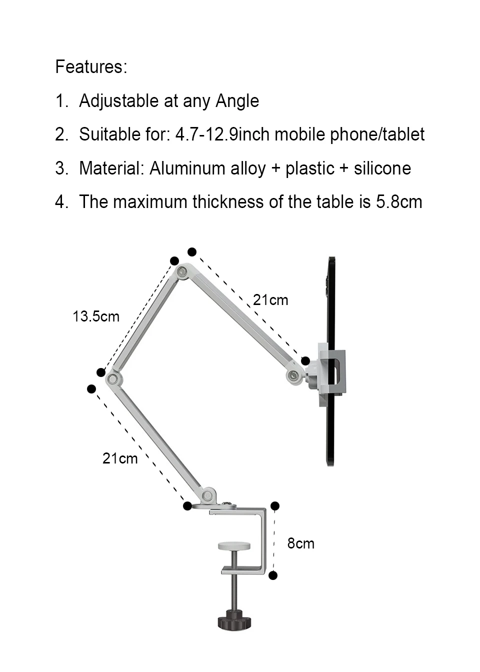 Comprar OUTMIX-soporte ajustable para tableta y teléfono móvil, brazo de aluminio para cama y escritorio, de 4 a 12,9 pulgadas, para iPad Mini