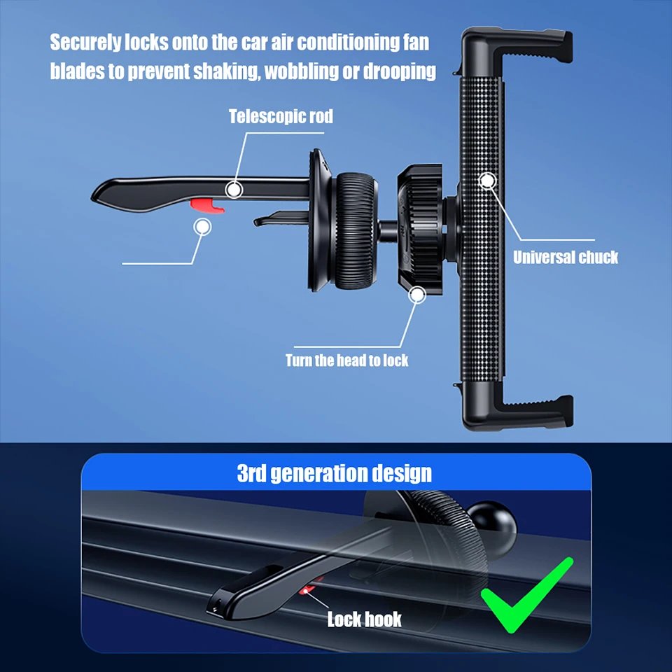 3. El clip de ventilación de aire mejorado puede sujetar firmemente el soporte de la tableta del teléfono