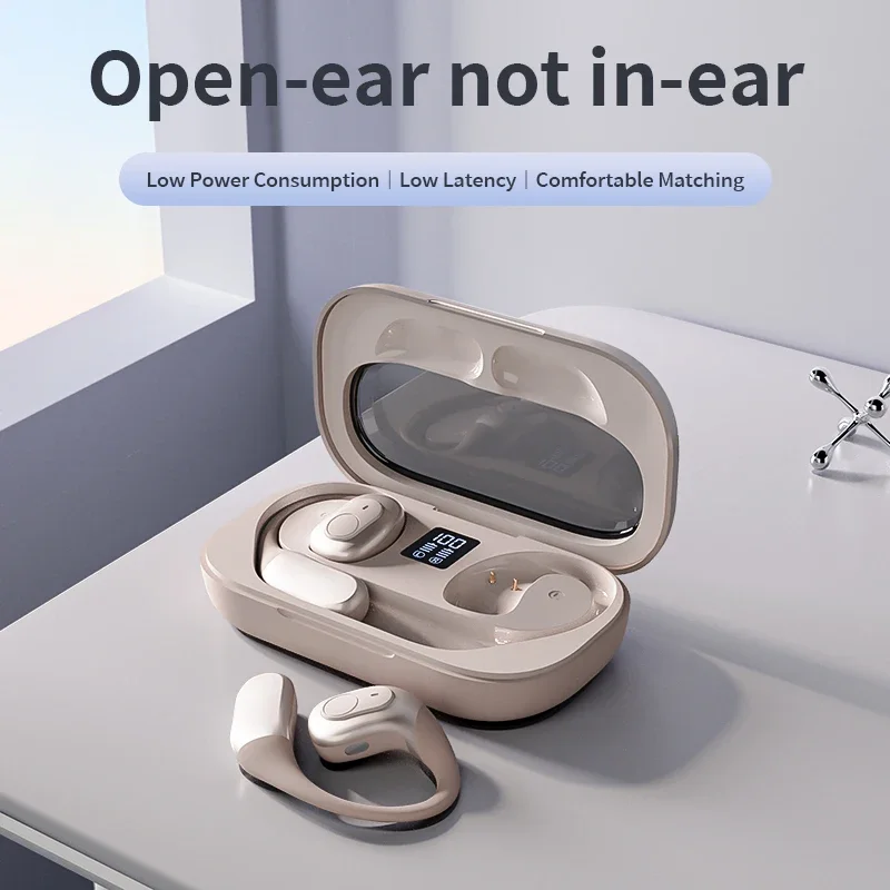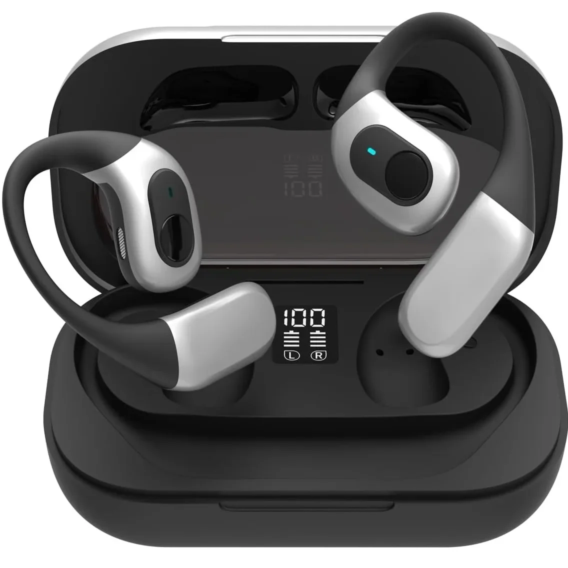 Diseño de oreja abierta para la máxima comodidad: estos auriculares inalámbricos Bluetooth cuentan con un diseño trasero abierto que deja espacio alrededor de las orejas, evitando un sellado completo del canal auditivo. Esto minimiza la incomodidad durante el uso prolongado. Su diseño aplica menos presión en los oídos y promueve la ventilación, reduciendo la acumulación de sudor durante actividades como viajes, deportes y senderismo. Ideal para entusiastas del aire libre que buscan comodidad y rendimiento.