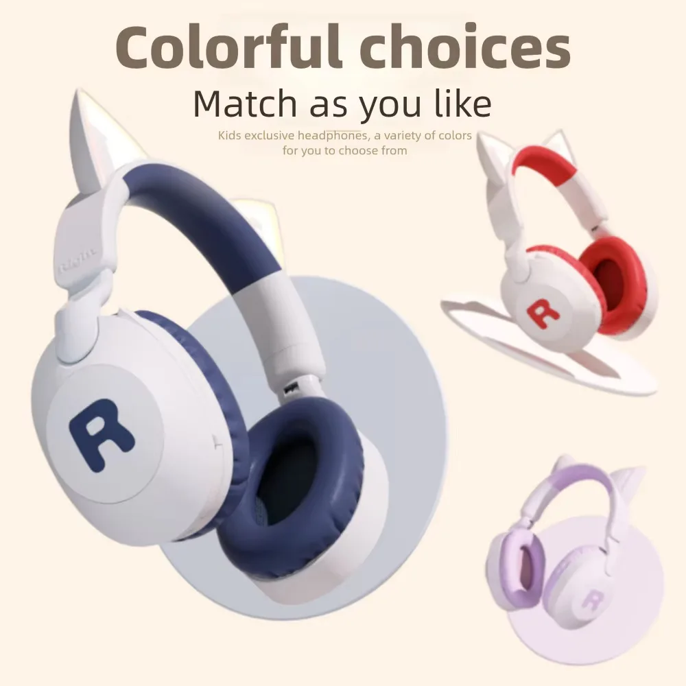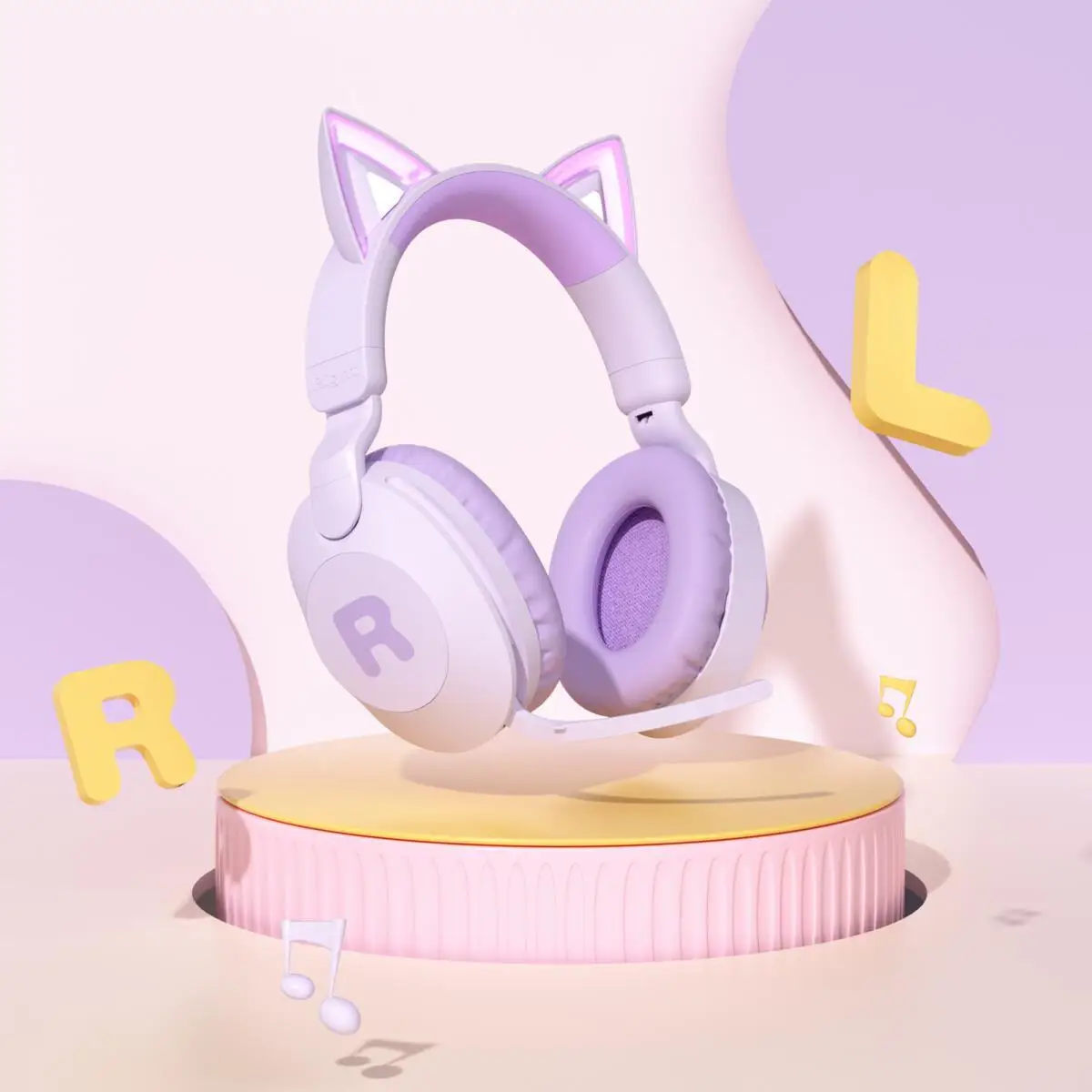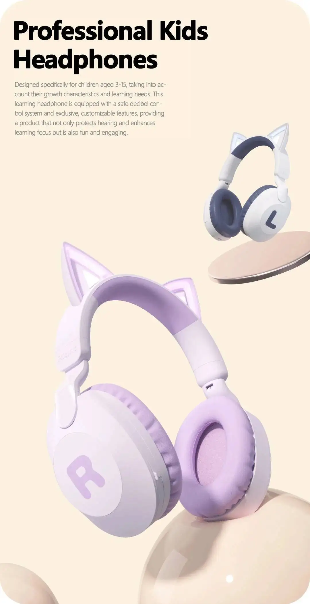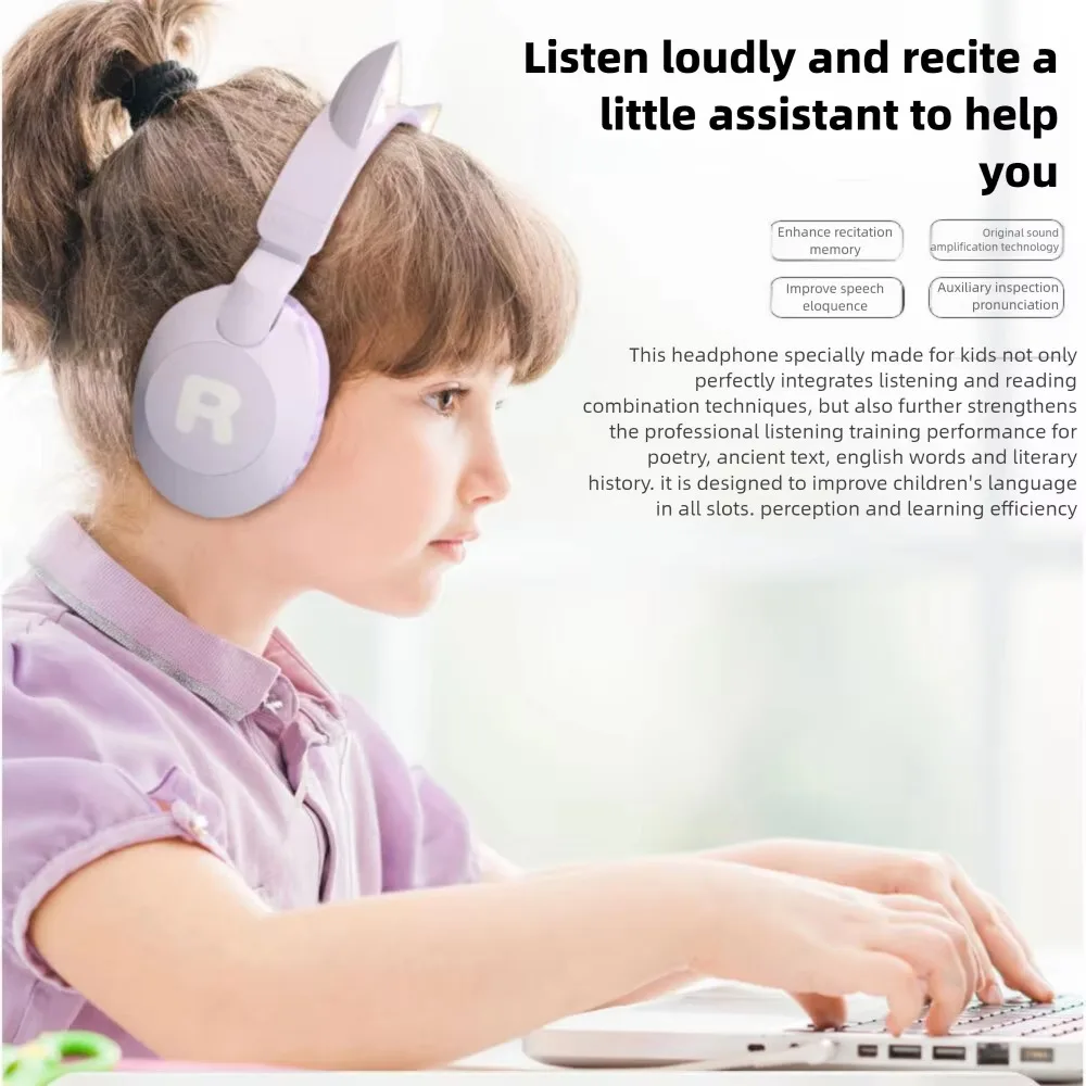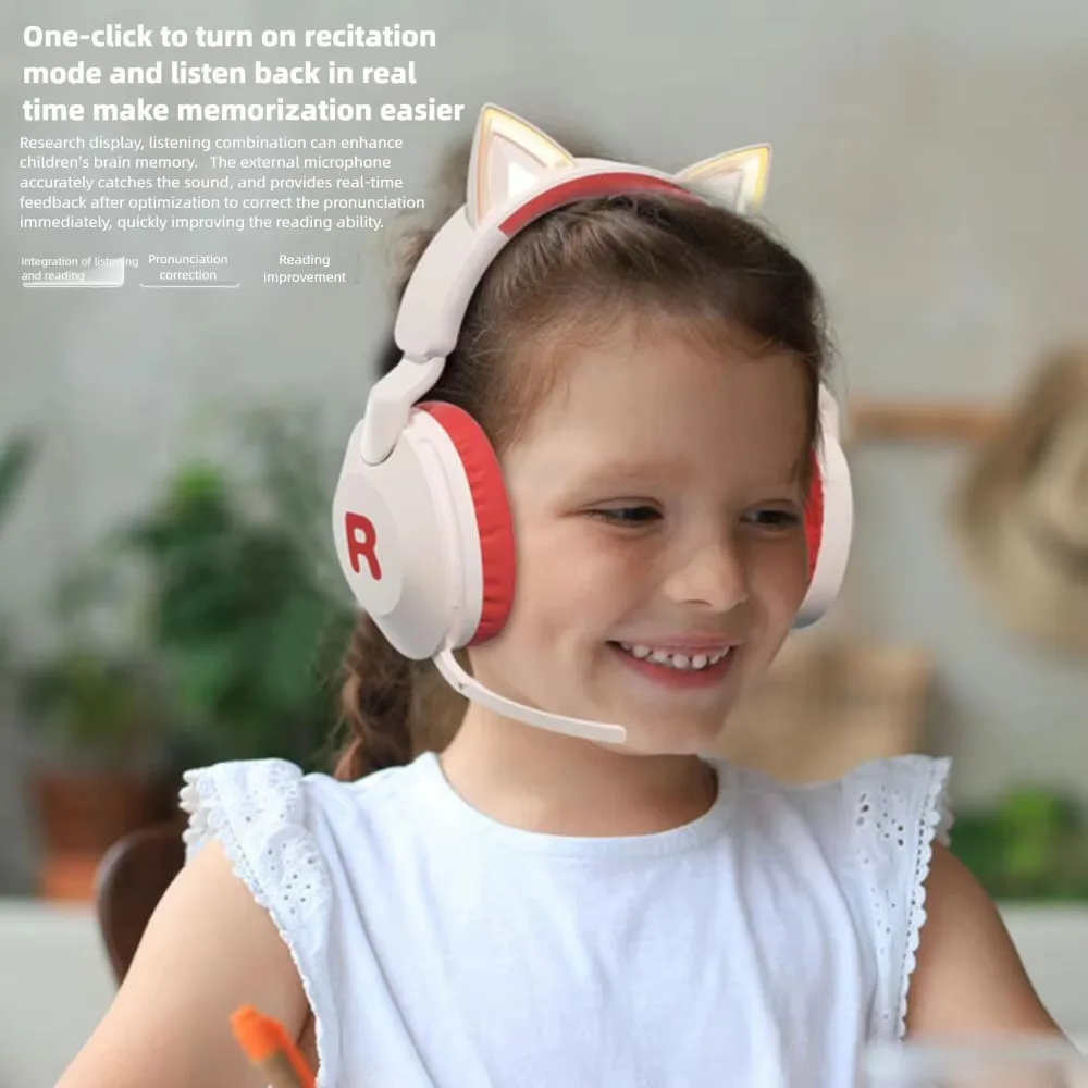 Auriculares inalámbricos Bluetooth con orejas de gato de dibujos animados, corrección de pronunciación, herramientas de memoria para aprendizaje, auriculares para niños