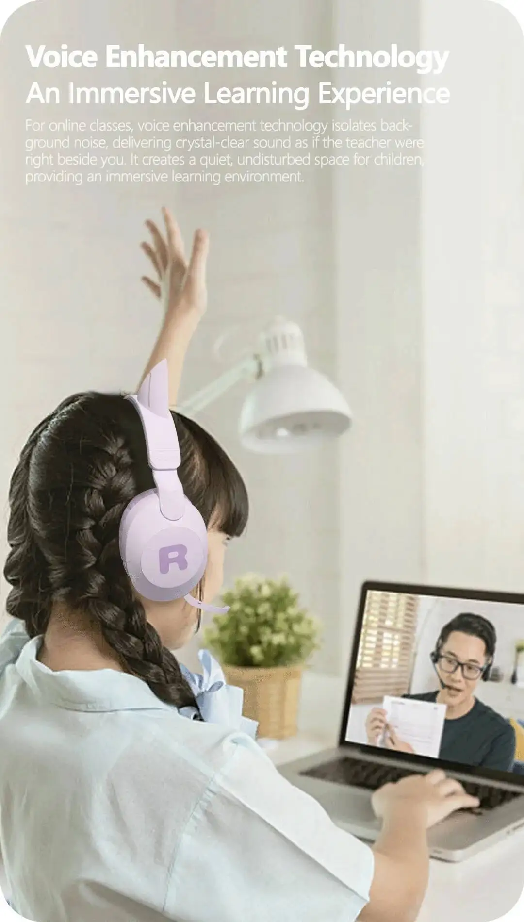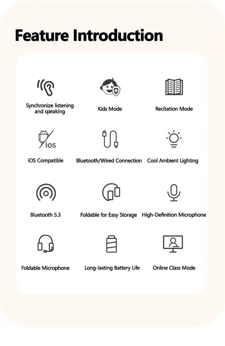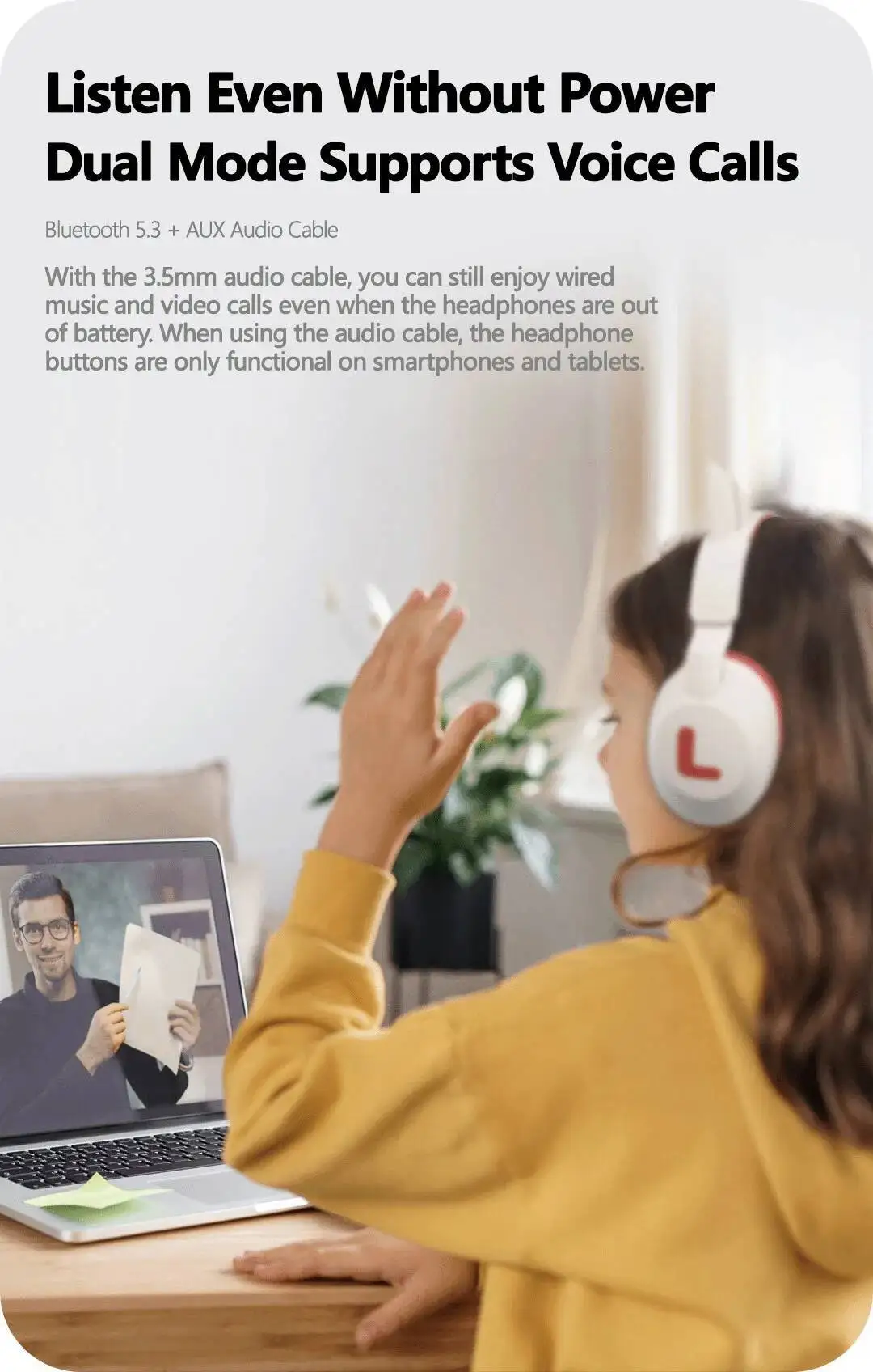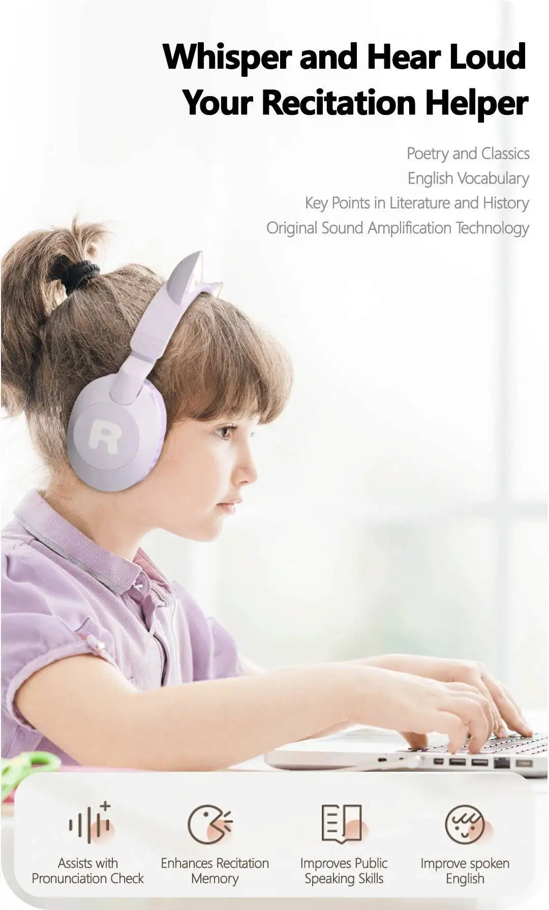 Auriculares inalámbricos Bluetooth con orejas de gato de dibujos animados, corrección de pronunciación, herramientas de memoria para aprendizaje, auriculares para niños