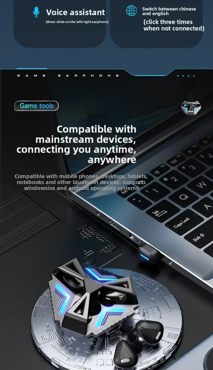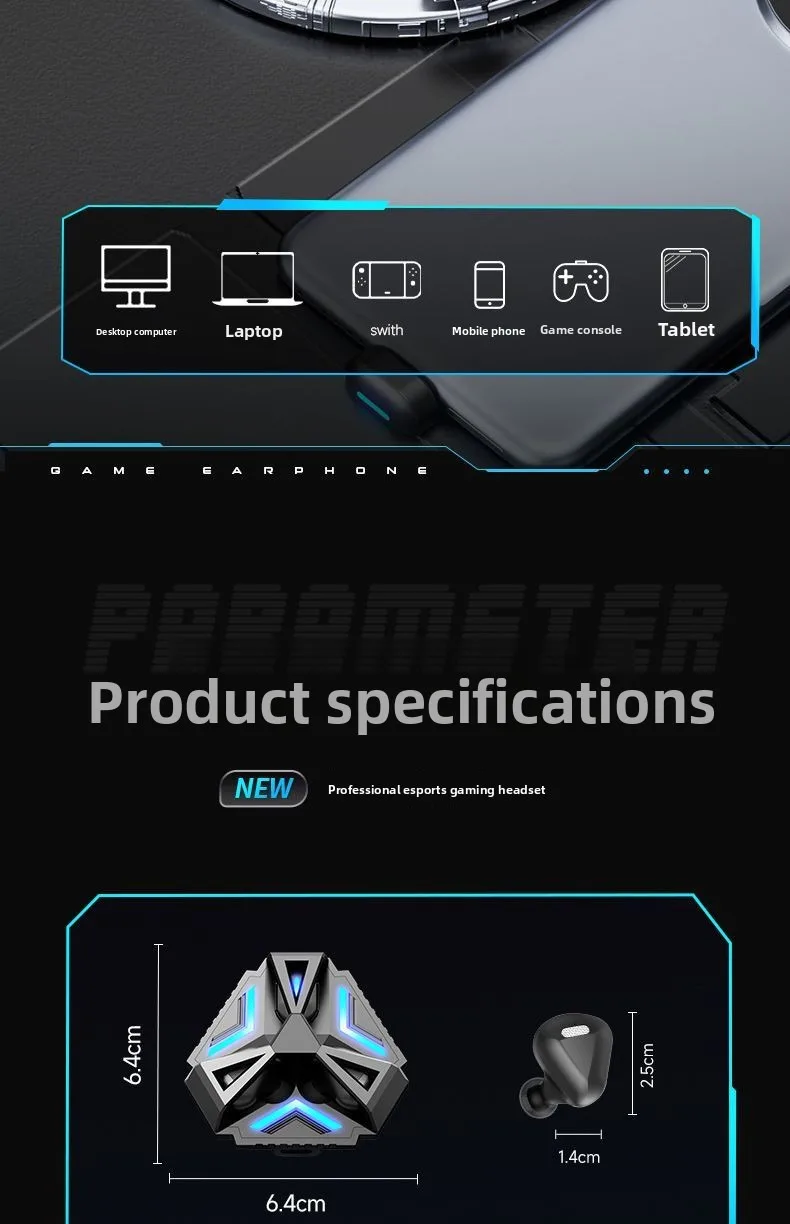 Cool Cyberpunk Style Bluetooth 2,4G inalámbrico de modo dual auriculares para juegos auriculares de baja latencia para tableta Android iPhone computadora