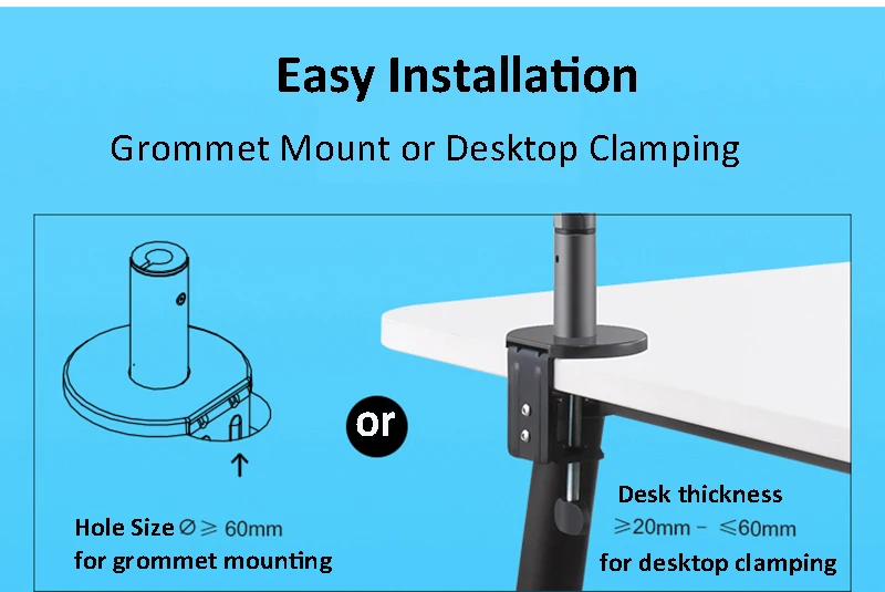 Instalación de abrazadera: para escritorio con un espesor de 20 mm a 60 mm
