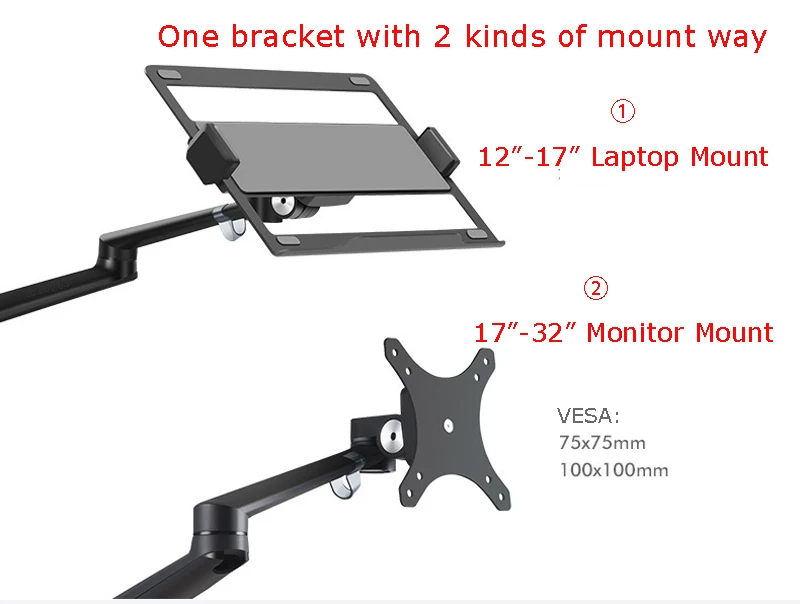 Comprar OZ-1S Soporte de aluminio 2 en 1 para computadora portátil de 12-17 pulgadas + soporte para monitor de 17-32 pulgadas brazo de puntal de gas elevador de escritorio carga de 2-8 kg