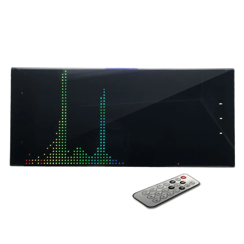 Luz ambiental de espectro musical, pantalla horizontal de 64 segmentos, vertical a todo color de 32 niveles, con MEMS y un procesador STM32F103, para realizar el análisis y la visualización colorida del espectro sonoro.El fuselaje está hecho de acero inoxidable y el panel frontal está hecho de una placa de PMMA negra de alta transparencia.