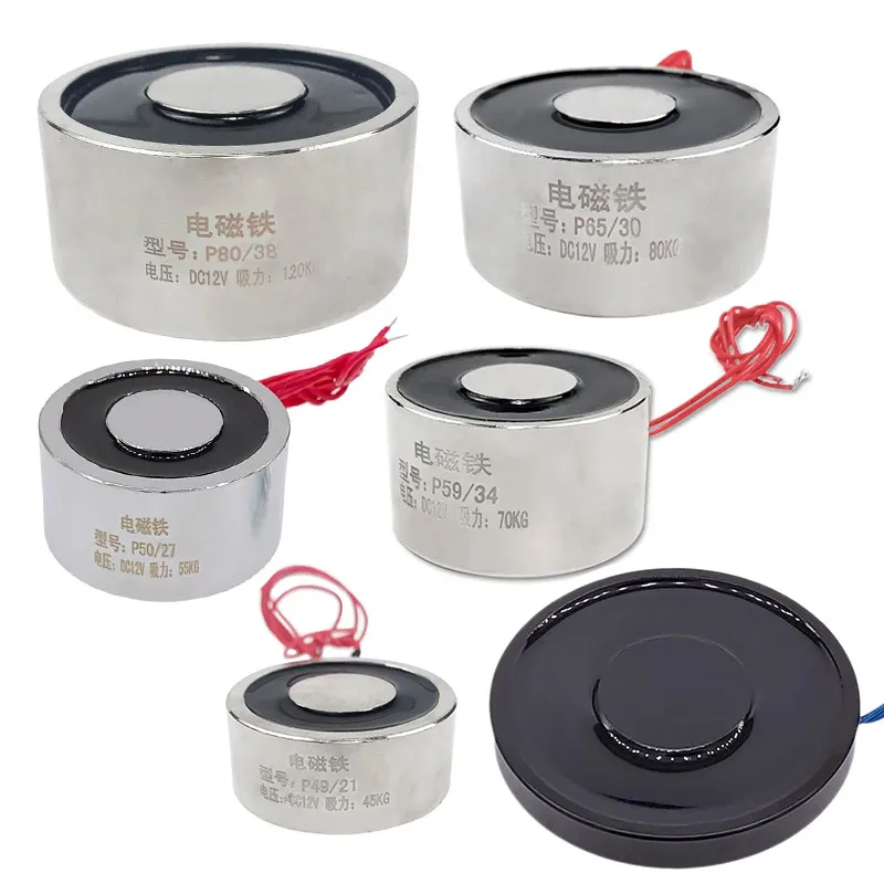 Comprar P49/21 P50/27 P59/34 P65/30 P70/9 P80/38 electroimán solenoide ventosa de elevación 12V 24VDC 55Kg/550N imán eléctrico de sujeción