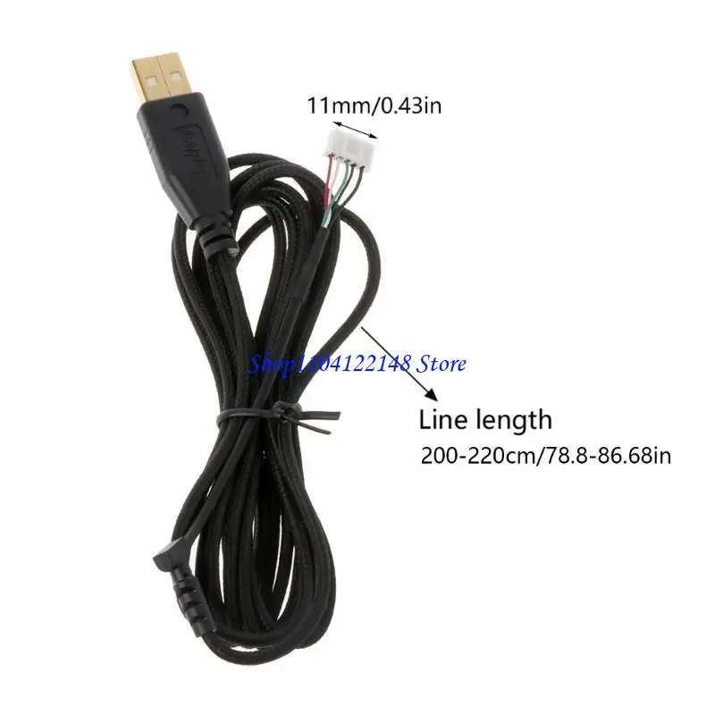 1 x línea de ratón con cable USB de nailon duradero chapado en oro