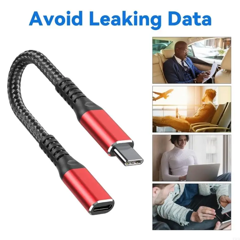 Características:OOTDTYBloqueador de datos Cable de carga tipo C hembra a macho, cable de extensión USB C, longitud total 12 cm.