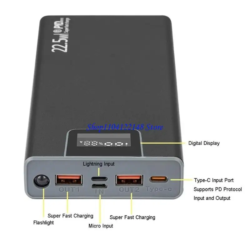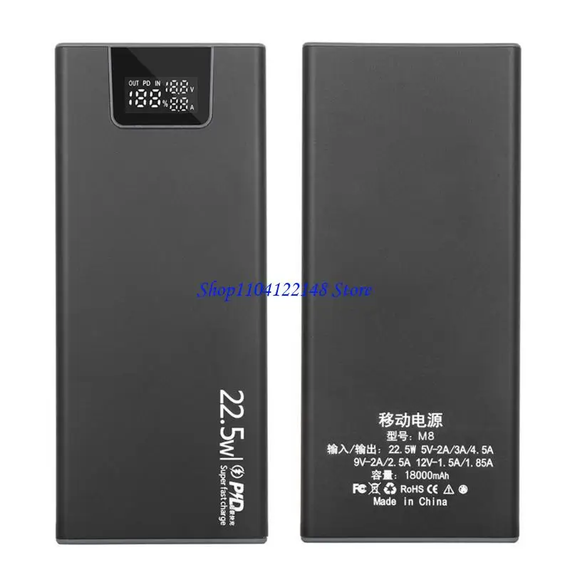 Soldadura de carcasas de aleación 8x18650 pantalla digital caja desmontable de carga más rápida de 22,5 W;