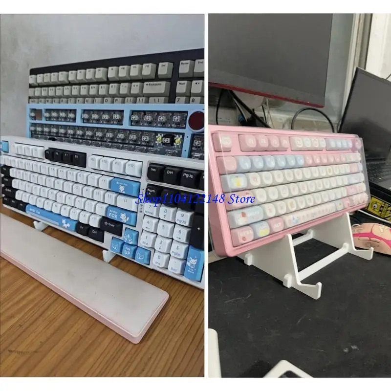 Eleva las configuraciones de tu escritorio con este versátil soporte para teclado, que se integra perfectamente en las decoraciones existentes y al mismo tiempo promueve una disposición óptima del dispositivo.