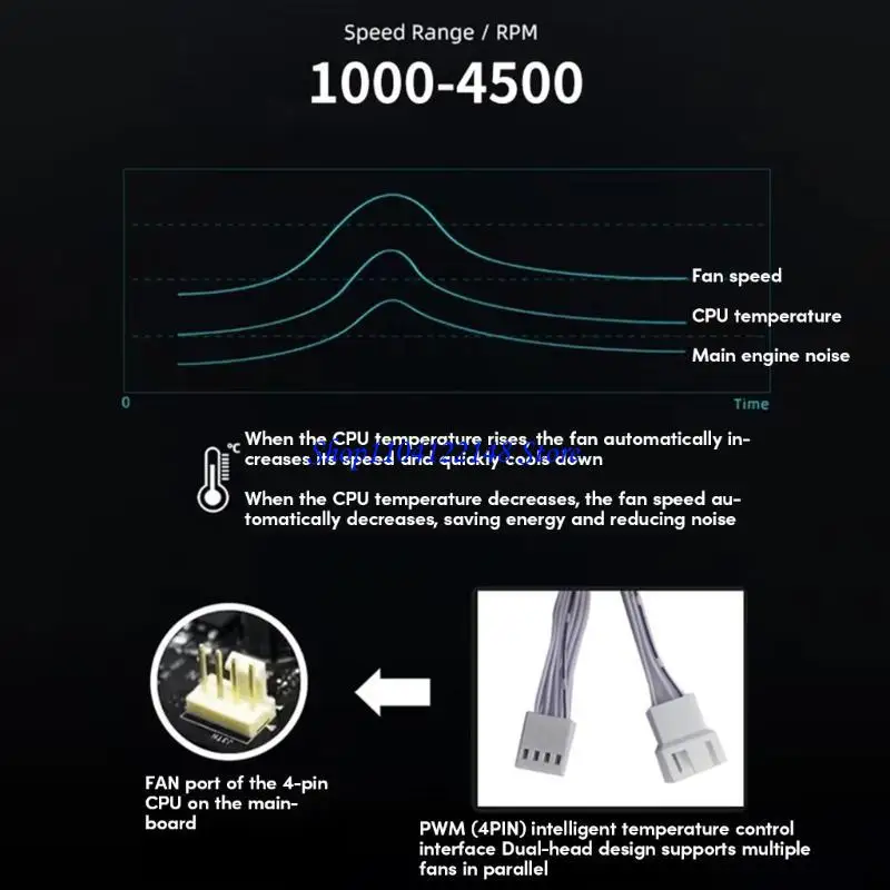 Admite la conexión de la placa baseInterfaces de control de temperatura PWM, ajustar inteligentemente la velocidad del ventilador según la temperatura de la CPU tiene las ventajas de conservación de energía y reducción de ruido.