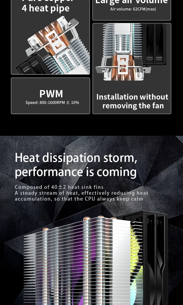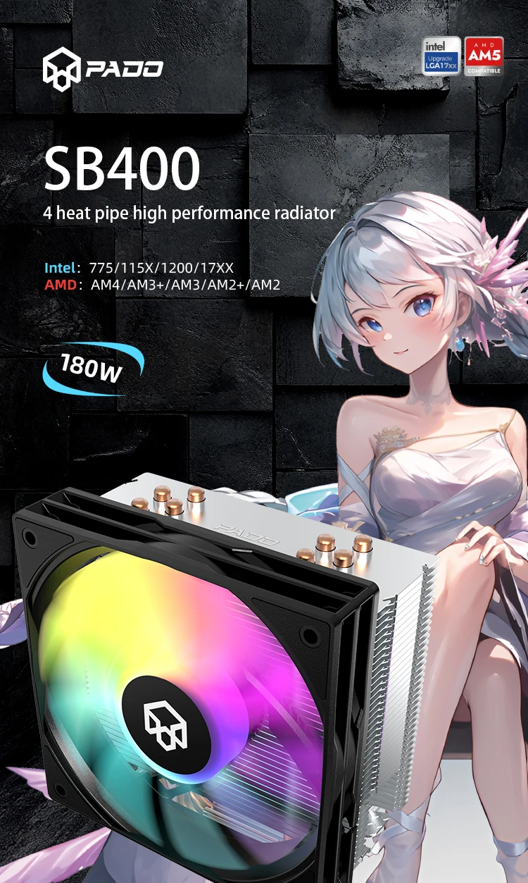 PADO CPU enfriador radiador RGB PWM versión silenciosa 4 tubo de calor PC enfriador de aire 120mm ventilador para Intel LGA 775 17XX 115X 1200 AMD AM5