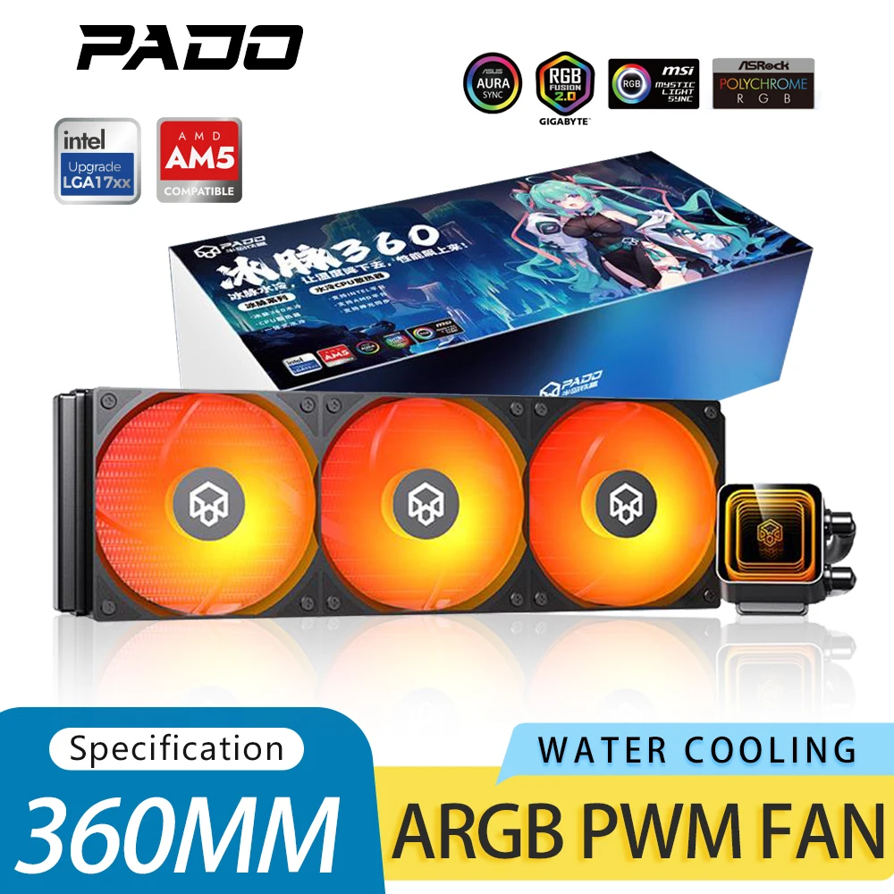 Comprar PADO enfriador de agua 360mm CPU Liqui refrigeración PC ordenador disipador de calor ARGB ventilador radiador AIO CPU enfriador de agua para INTEL AMD X99 AM4 AM5