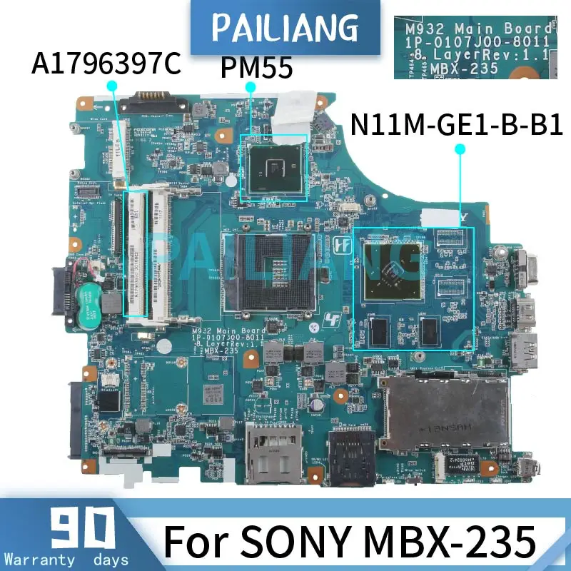 Comprar PAILIANG placa base de computadora portátil para SONY MBX-235 placa base A1796397C 1P-0107500-8011 PM55 REV.1.1 N11M-GE1-B-B1 DDR3 tesed