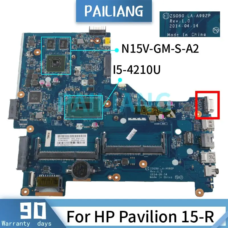 Comprar PAILIANG-placa base para ordenador portátil HP Pavilion 15-R, placa base de I5-4210U, LA-A992P, 781640-501, SR1EF, N15V-GM-S-A2, DDR3, tesed