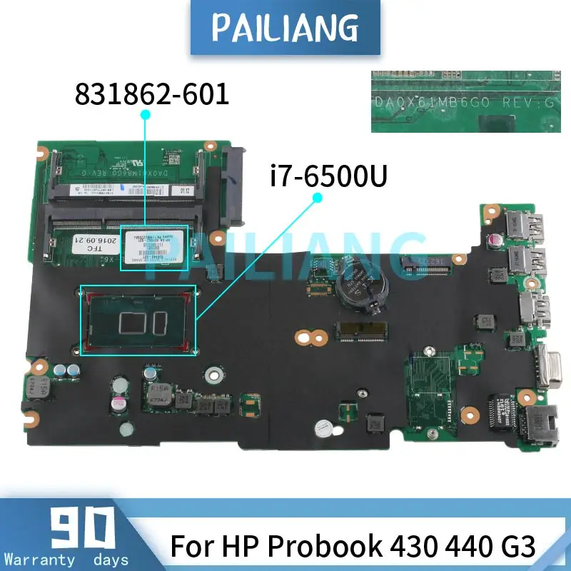 Comprar PAILIANG placa base para portátil HP Probook 430 440 G3 i7-6500U placa base DA0X61MB6G0 831862-601 SR2EZ DDR3 tesed