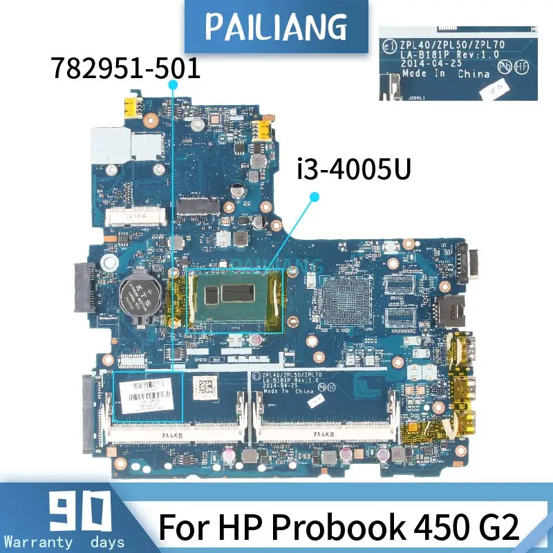 Comprar PAILIANG-placa base para portátil HP Probook 450 G2, 782951-501, LA-B181P Core, SR1EK, i3-4005U, DDR3