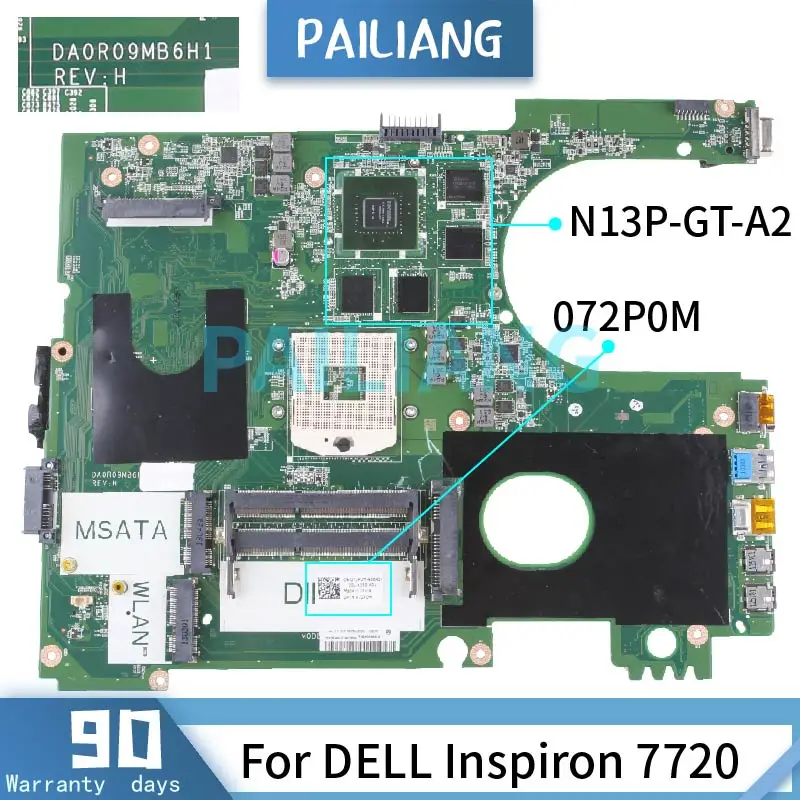 Comprar PAILIANG portátil placa base para DELL Inspiron 7720 placa base CN-072P0M DA0R09MB6H1 N13P-GT-A2 DDR3 tesed