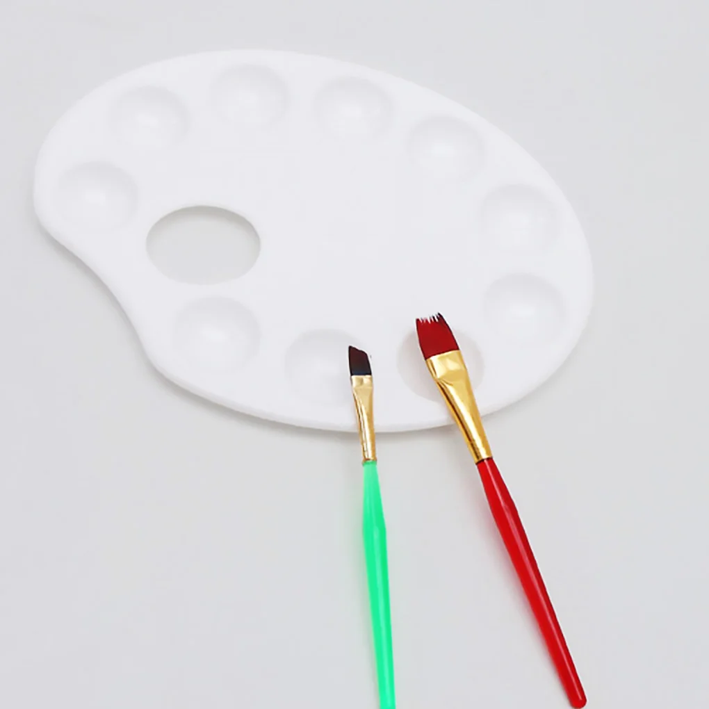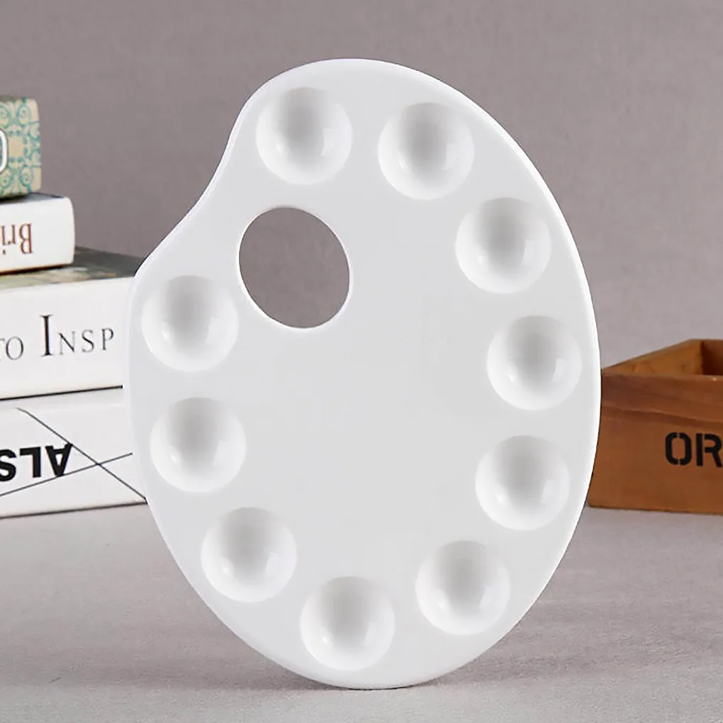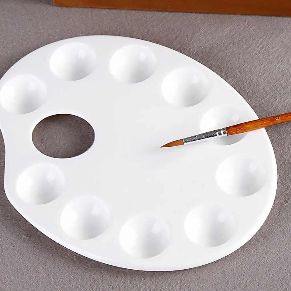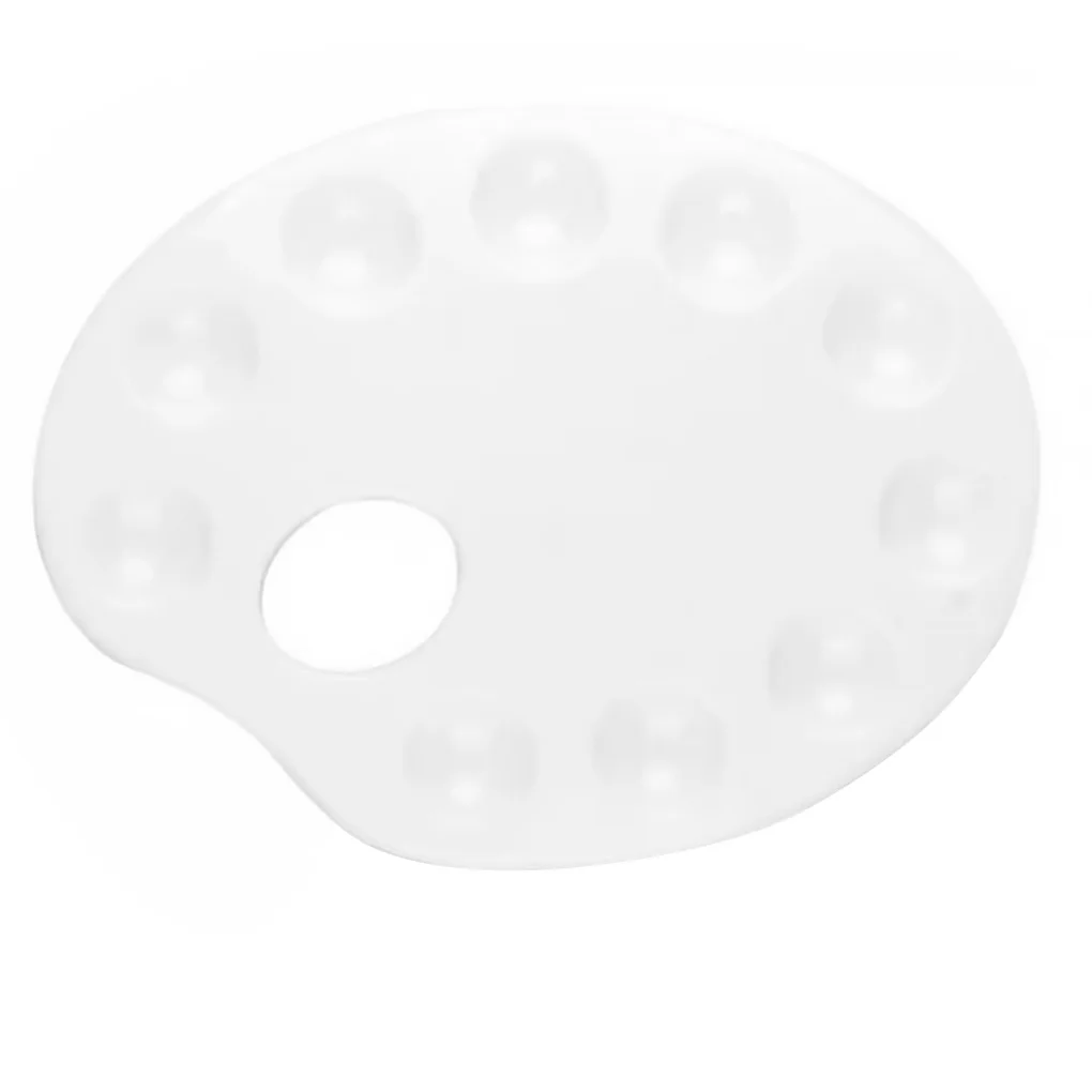 Comprar Paleta ovalada portátil de acuarela blanca, bandeja de 10 agujeros, paletas artesanales para estudiantes, suministros de placa, parte inferior lisa
