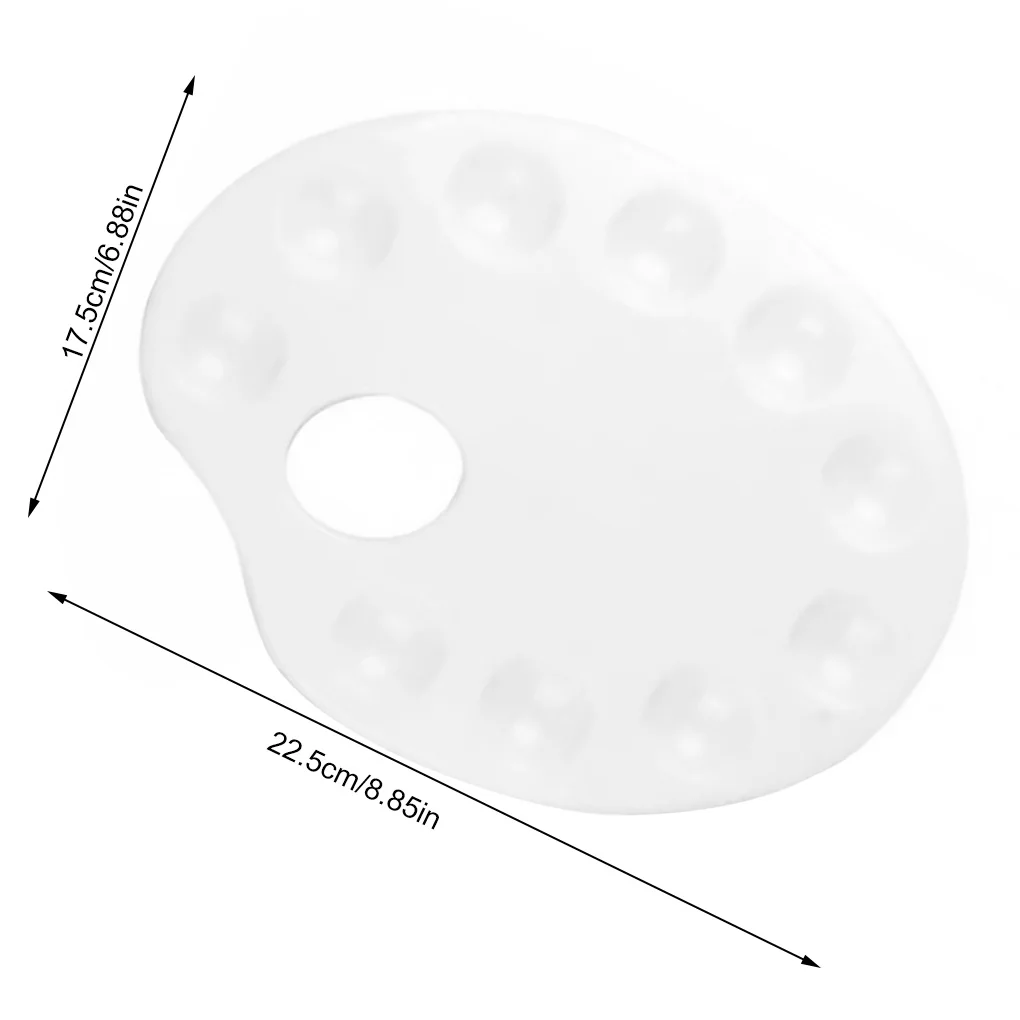 Comprar Paleta ovalada portátil de acuarela blanca, bandeja de 10 agujeros, paletas artesanales para estudiantes, suministros de placa, parte inferior lisa